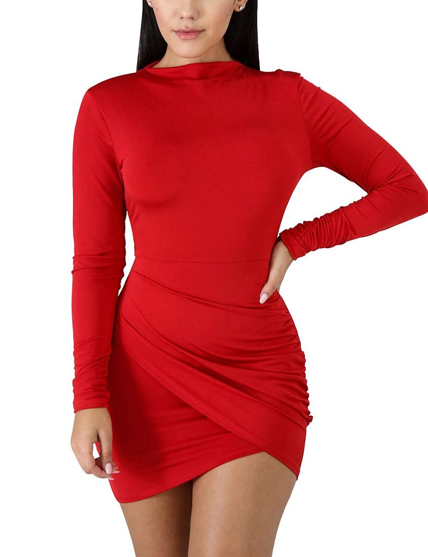 BORIFLORS Women's Sexy Wrap Front Long Sleeve Ruched Bodycon Mini Club Dress