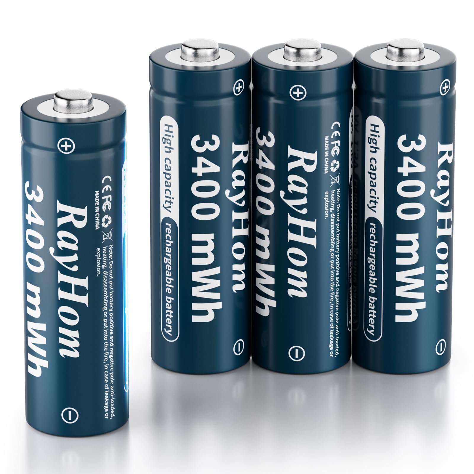 Rechargeable AA AAA Ni-Mh Batteries with Charger - 8Pack 2800mAh Double A batteries & 8Pack 1100mAh Triple A batteries with 2 Pack 8 Slots Battery Charger for Ni-Mh/Ni-Cd Rechargeable Battery 【Complete Charging System】Including 12x3400mWh high-capacity rechargeable AA batteries and an advanced 12-slot lithium battery charger. Each charging solt operates independently, allowing flexible charging from 1 to 12 batteries simultaneously with smart △V cutoff technology. 【Universal Compatibility】Professional-grade AA lithium battery charger works with all 1.5V rechargeable double A lithium batteries from any brand. Features automatic detection to reject non-rechargeable/damaged cells (red LED alert) and over-temperature protection (green LED flash warning). 【Rapid & Safe Charging】Equipped with MCU-controlled 350mA pulse charging current and auto-switch to trickle mode. USB-C powered charger delivers 5V stable output, completing AA batteries charging 30% faster than standard chargers while preventing overcharging/overheating. 【Smart Storage Solution】Magnetic-sealed charging station with full-wrap design protects your rechargeable AA batteries from dust, moisture, and dirt when not in use. Compact footprint for perfect home/office battery organization. 【LED Indicator 】USB-C AA battery charger with LED status indicators (charging-red/fully charged-green). Ideal for high-drain devices like game controllers, flashlights, and digital cameras. Includes 1 year warranty. 【Excellent after-sales service】RayHom has high-quality and perfect after-sales service, if you have any problems with the product you received, please contact us immediately, we will try our best to help you solve it.