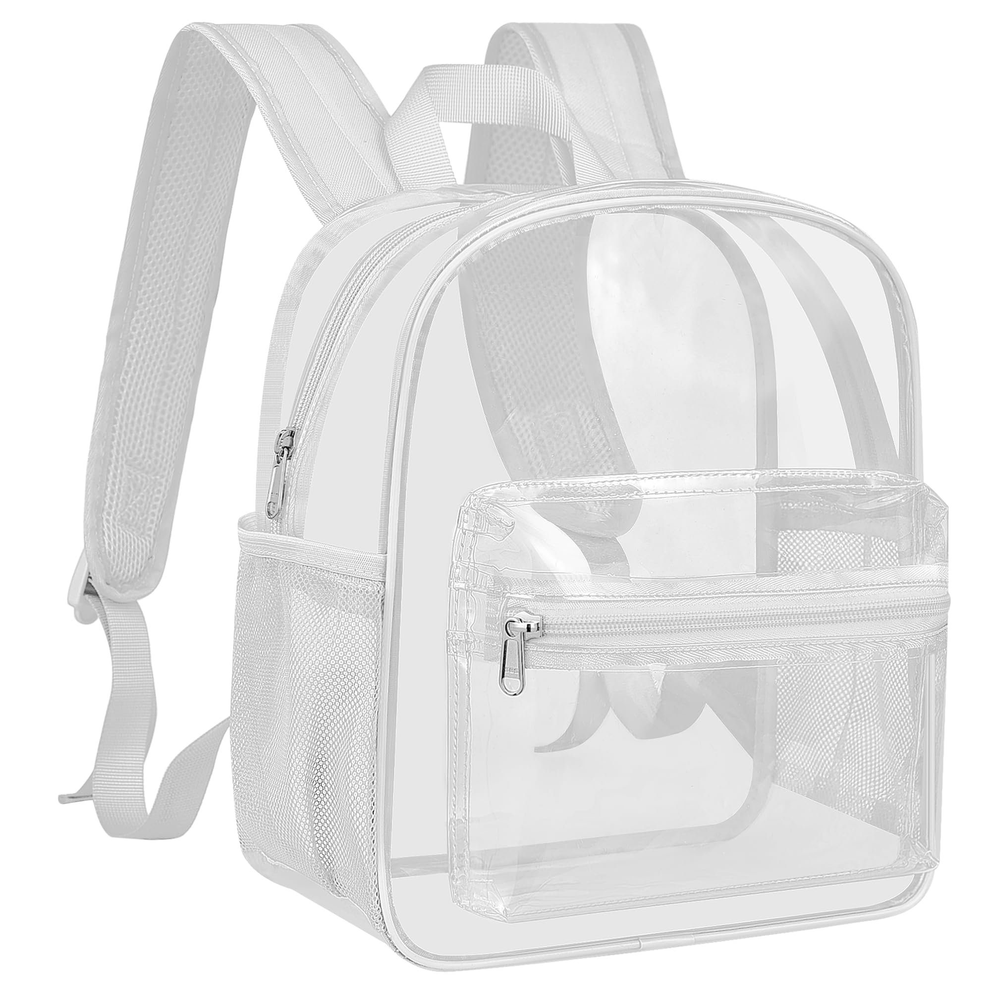 Your Ultimate Stadium-to-School Clear Backpack: Compliant, Unbreakable & Stylish!Imagine: You’re at a sold-out sports game. Security lines snake for blocks—but you stride straight through. Why? Your clear bag for stadium events meets every venue rule (11"x12"x5"), while Bags that do not comply with stadium policy get turned away. Rain starts? Your phone stays dry. Crowd surges? Reinforced seams hold strong.Details:Size of clear backpack: 11"(L)x5"(W)x12"(H)Size of front pocket: 8.4" x 6"Capacity: 11LMaterial: 0.4mm PVCWeight: 360g / 0.8 lbAdjustable Straps: 18"-32"Why This Backpack Dominates:Checkpoint Friendly Meet the 12x12x6 Clear Bag stadium policy Fits under stadium seats, bleachers, or plane seatsMore Capacity Main compartment: 2 water bottles + sweatshirt + snacks Front pocket: Wallet, sunglasses, tickets (quick-scan access) Tip: Use mesh sides for wet umbrellas or condensation-covered drinks!Material Thickness 0.4mm PVC laughs off beer spills, mud, and scratches Reinforced stitching carries 15+ lbs (textbooks/merch) without saggingComfort That Keeps Up Padded straps prevent shoulder strain when you need to carry your backpack for a long time. Adjust from crossbody (hands-free dancing) to backpack (crowd navigation)Note: 1, When you receive the clear bag, we suggest that you fill it with something similar to a towel, and then use a hair dryer to blow it evenly for a few minutes. You will get a beautiful transparent bag, the clear bag will have a three-dimensional feel.2, The zipper is not waterproof, avoid submerging it in water.3, Wipe away dust and dirt with soap and water for an easy clean. 【Clear Stadium Bag】Our stadium approved clear backpack make entry a breeze. Stay stylish while complying with regulations and breeze through security checks. 【Small Size】The size of this clear backpack is 11*12*5 inches, is spacious enough to hold all your concert or stadium essentials. From water bottles and snacks to wallets and sunglasses, it's perfect for hassle-free entry. Stay organized and enjoy the event without worrying about security restrictions. 【Sturdy Material】Additionally, this clear backpack is made of water-resistant and cold-resistant PVC material, which helps protect your belongings from moisture and cold weather. The seams of the bag are reinforced to provide extra strength and prevent tearing or splitting, even when carrying heavier items. 【Adjustable Straps】The clear backpack features adjustable straps, allowing you to customize the fit and comfortably carry it on your shoulder or across your body. Whether you're attending a festival, engaging in sports activities, or heading to work, our products are versatile enough to meet your needs. 【Suitable Occasions】Stand out at country concerts with our stylish and practical country concert outfits for women, perfectly complemented by our clear concert bag that not only meets venue regulations but also allows you to showcase your fashion-forward ensemble.