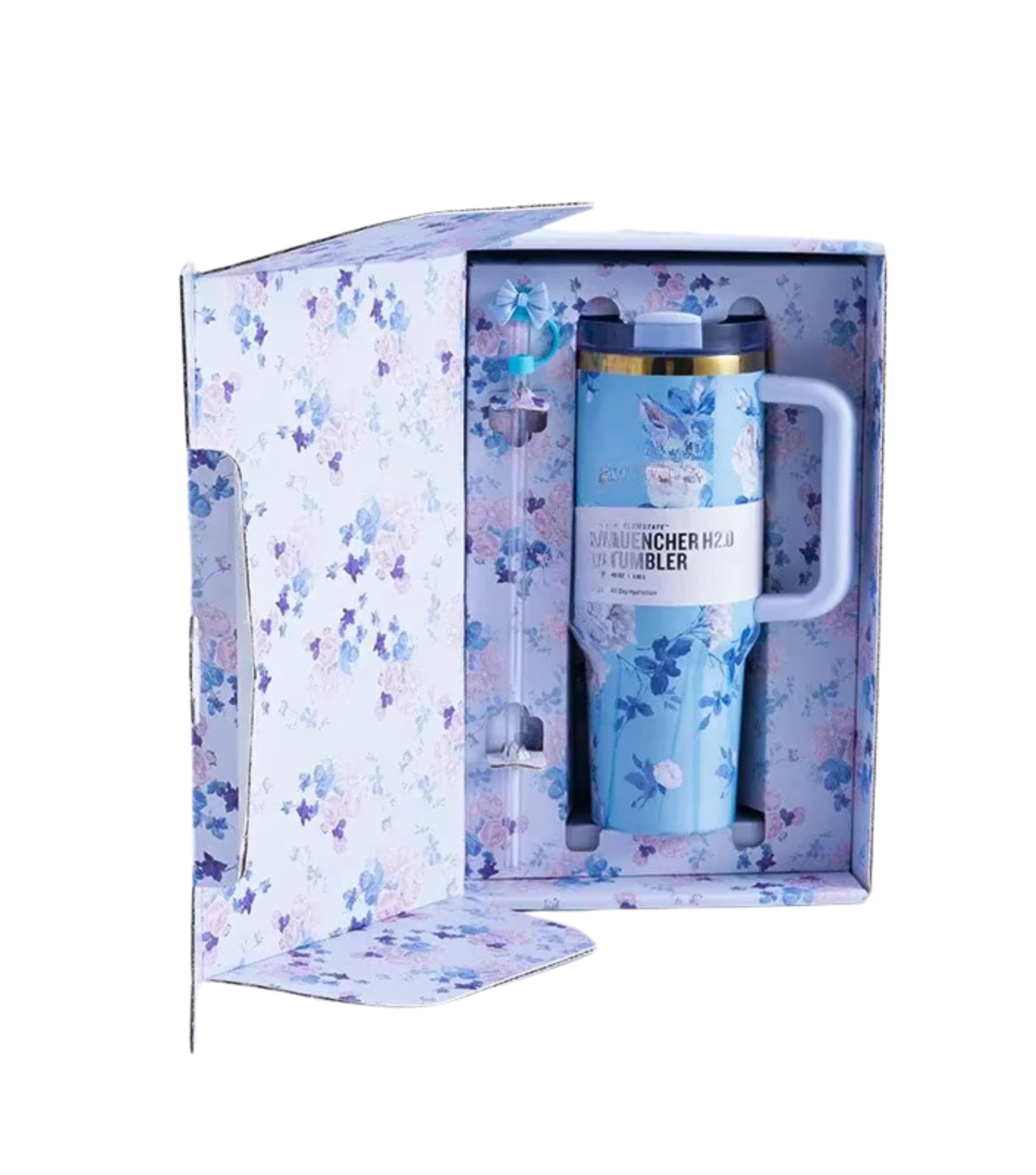 Love Shack Fancy Quencher Tumbler 40 oz Quencher H2.0 with box.40oz Tumbler with Handle,Double Wall Vacuum Reusable Stainless Steel Insulated Water Bottle,With Leak Proof lid and Straw (): Blue