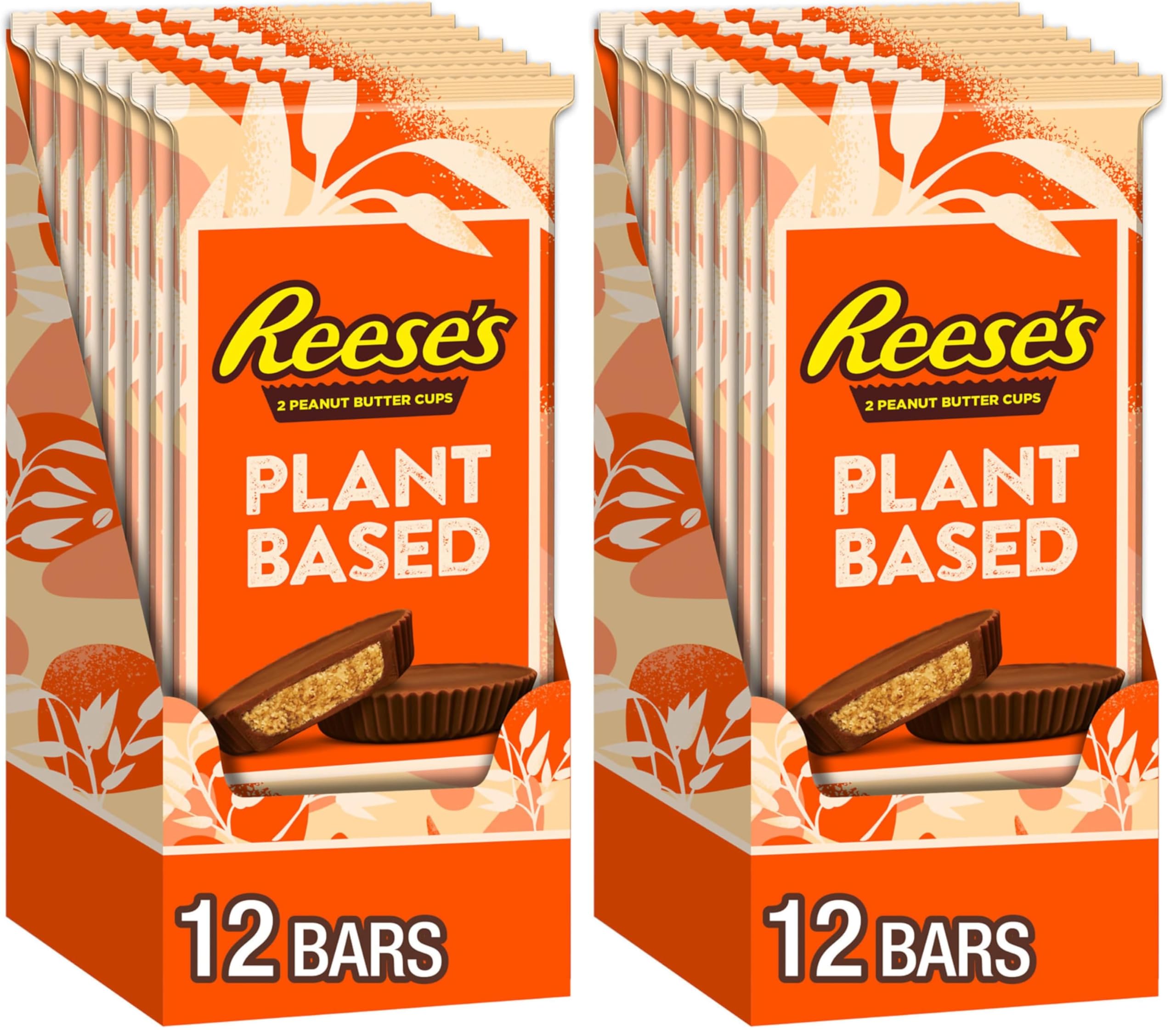 These REESE'S Plant Based Oat Chocolate Confection Peanut Butter Cups are the perfect way to celebrate ordinary days and special occasions from birthdays and graduations to sporting events and summer picnics. These delicious cups combine creamy peanut butter and oat chocolate confection for a plant based treat you'll love. REESE'S peanut butter cups make the perfect snack during lunch breaks and road trips or as a sweet dessert after dinner. They're also great for taking on-the-go as you run errands or if you need a special peanut butter treat during your next movie marathon. Plus, they're certified kosher and vegan, so everyone can have the chance to enjoy individual cups. Contains twelve (12) 1.4-ounce packs of REESE'S Plant Based Oat Chocolate Confection Peanut Butter Cups Candy Indulge in a vegan and plant based version of your favorite, classic REESE'S peanut butter cups Plant based REESE'S cups made with peanut butter and oat chocolate confection for a delicious kosher candy and vegan snack experience Enjoy REESE'S peanut butter cups in back to school lunches, birthday parties, anniversary dates and every special occasion in between Celebrate your Easter, Christmas, Valentine's Day and Halloween candy celebrations with this special peanut butter cup full of plant based ingredients
