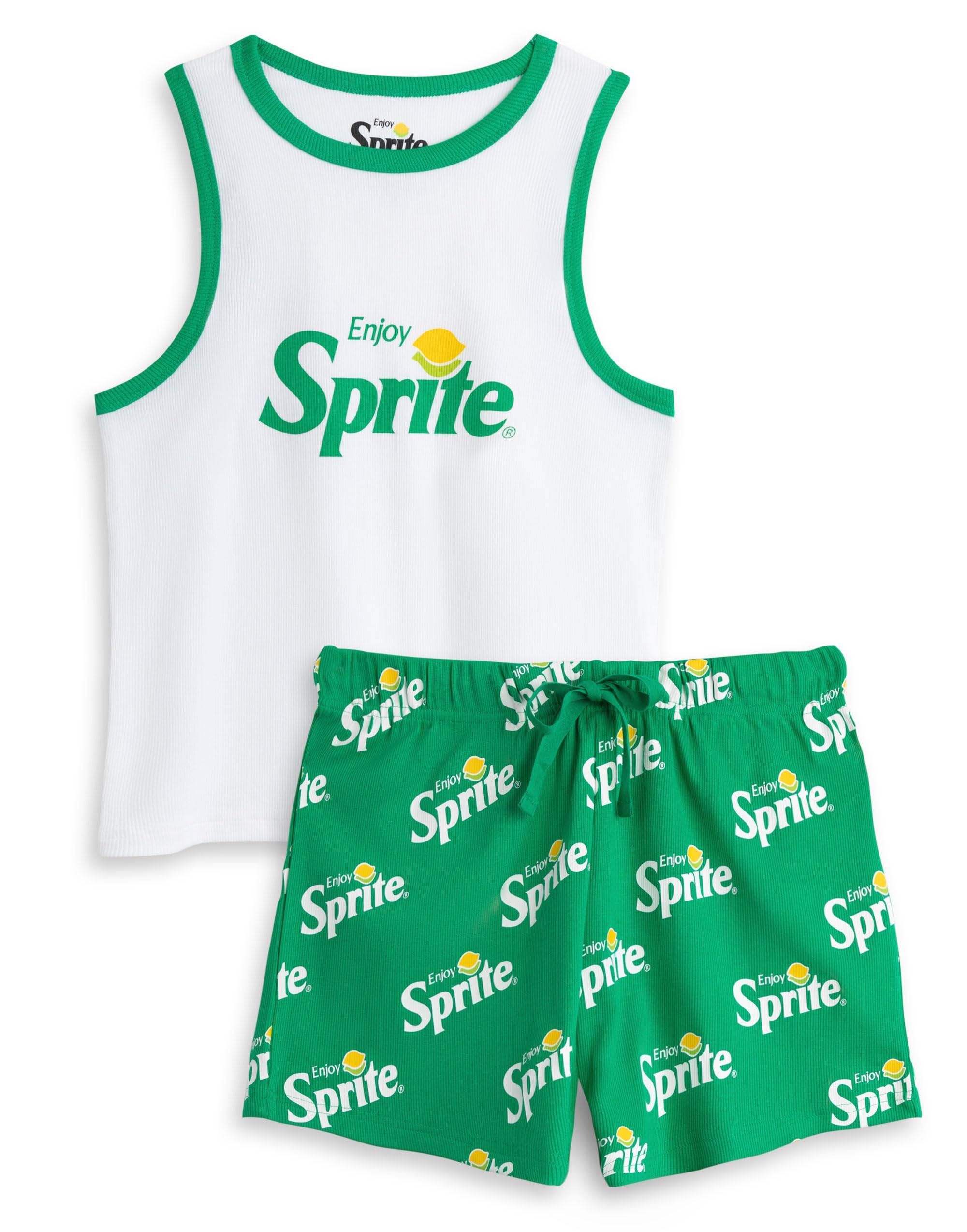 Coca-Cola Sprite Women's White & Green Pyjama Set | Sleeveless Vest and Shorts Sleepwear | Comfortable Loungewear Nightwear
