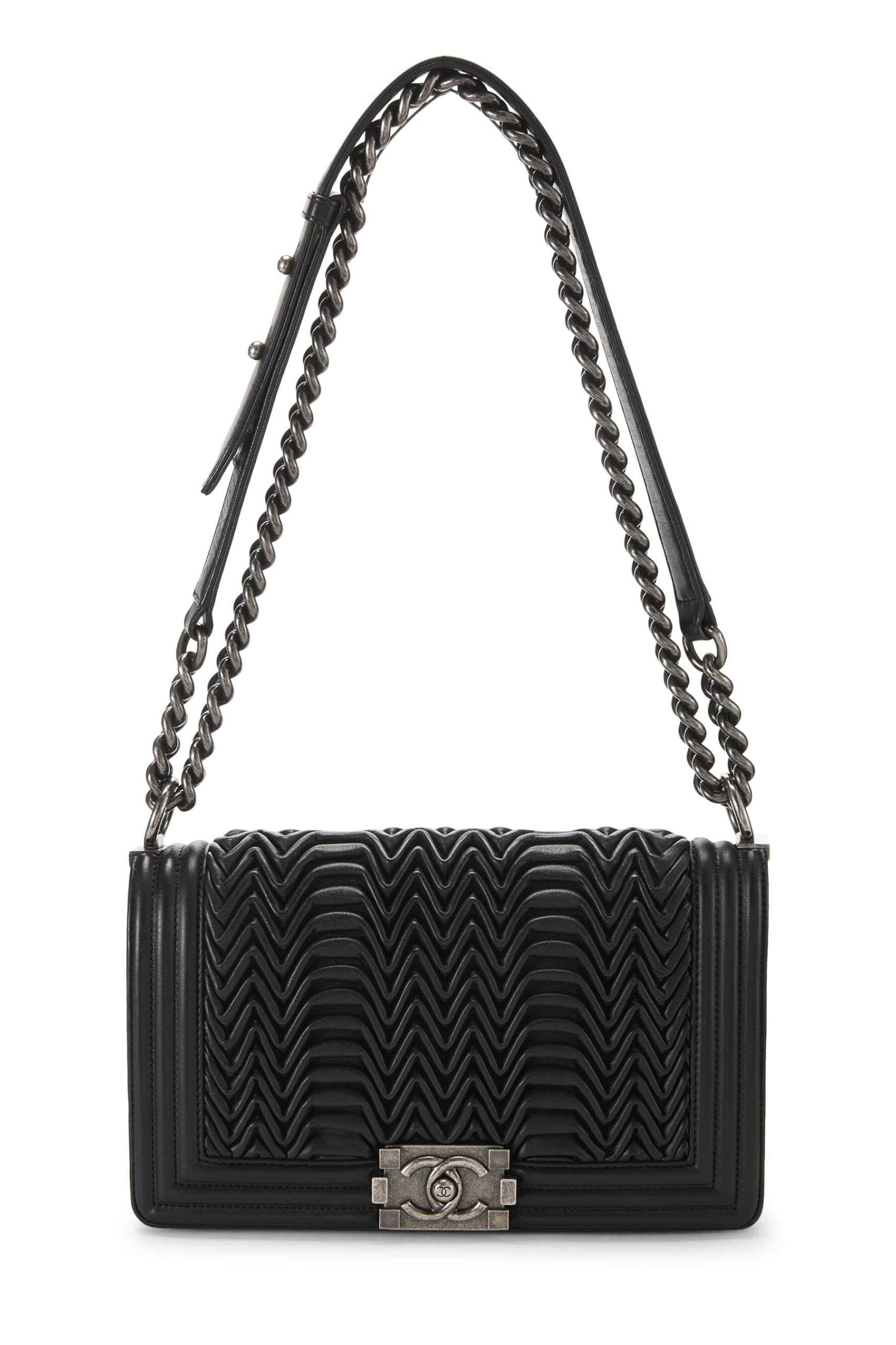 Chanel, Pre-Loved Black Chevron Pleated Lambskin Boy Bag Medium, Black