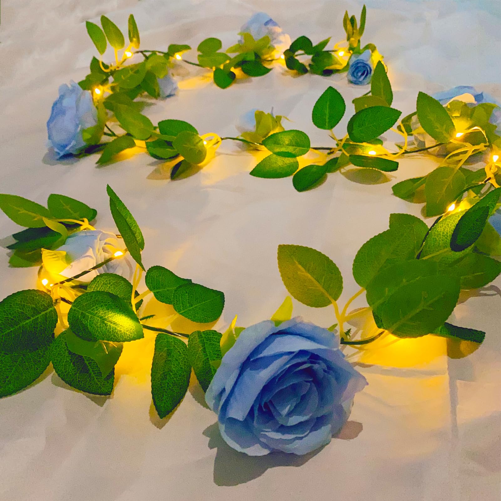 Fielegen 6.56 FT Halloween Artificial Rose Vine Lights Fake Floral Garland Wall Decoration Faux Plants Rose Vine with 20 LED Fairy Lights Battery Operated String Lights for Garden Wedding Decor: Blue