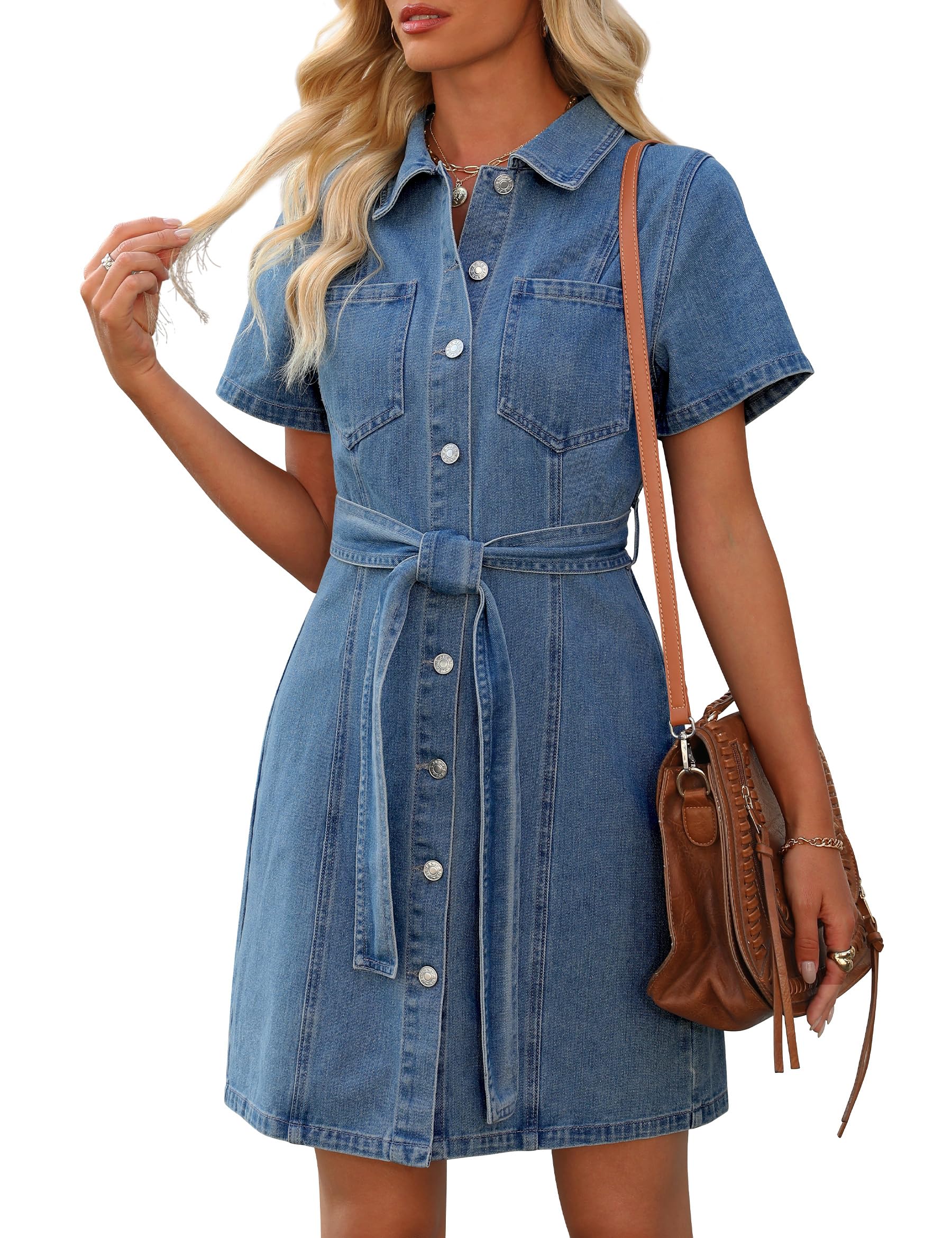 Nitzana Women's Denim Dress Short Sleeve Jean Dress Button Down Denim Shirt Dresses with Pocket 2026 Western Outfits: Small Light Blue
