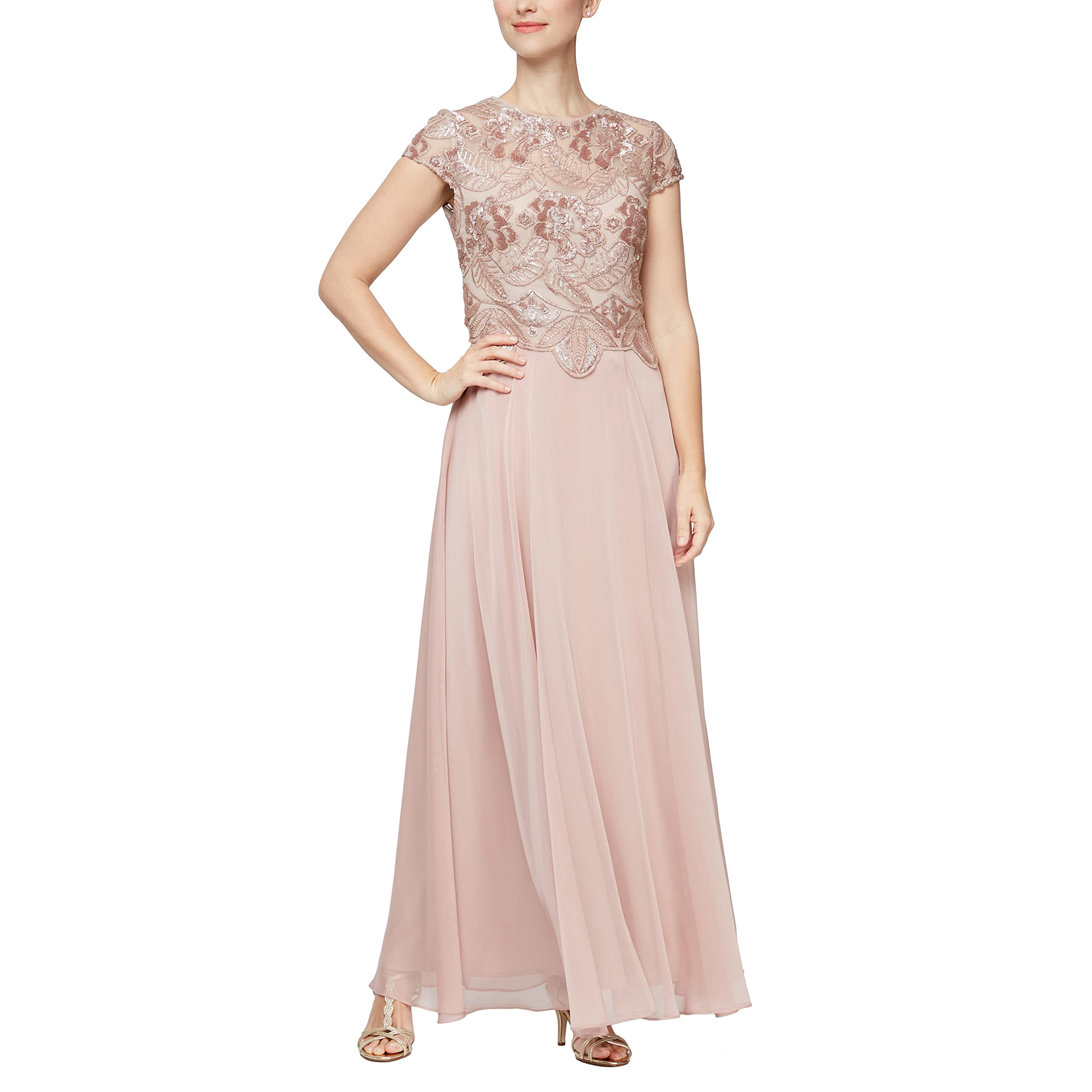 Alex Evenings Womens Cap Sleeve Long Mock Dress: 16 Rose Gold