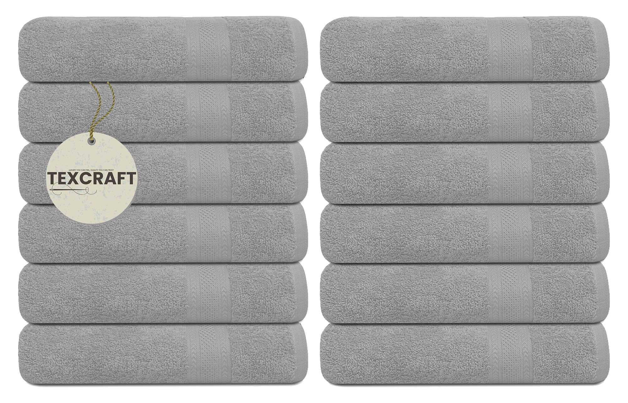 TEXCRAFT Medium Size Bath Towels Set of 6 – 100% Cotton Terry – 24" x 48" – Quick Dry, Soft & Highly Absorbent – Grey Towels for Bathroom, Gym, Spa, Pool & Daily Use: Light Grey 24''x48'' - PK 12