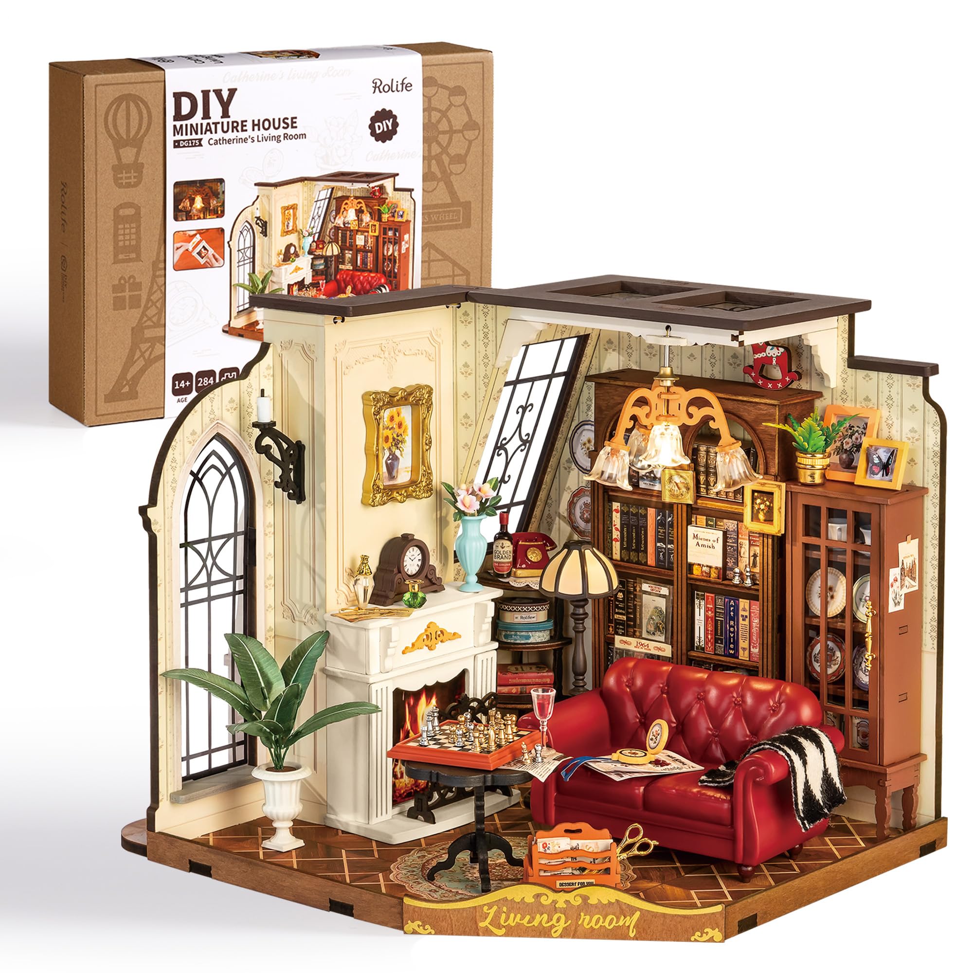 Rolife DIY Miniature House Kit for Adults, Mini Wooden Dollhouse Kit, Tiny House Diorama Building Kits-Birthday Christmas Craft Hobbies Gift for Teens Kids (Catherine's Living Room)