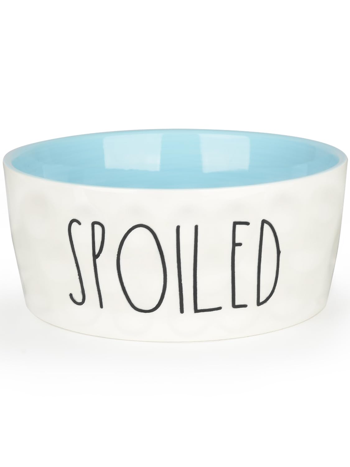 The size of the dog bowl is suitable for use as a food bowl and a water bowl, making it very suitable for different breeds of small and medium-sized dogs. Made of ceramics, it is heavy. Ceramic material and wide bowl mouth are easy to clean. Due to its heavy weight, the dog will not easily push this bowl, ensuring that it will not roll over during use. Large Capacity Bowl: The WoofinPets dog bowl measures 8''D * 3.4''H and has a capacity of 70 ounces / 2100ml, which can be used as a food bowl and water bowl alone, perfect for different breeds of medium and large dogs Ceramic Material: This ceramic dog bowl is made of food grade ceramic, heavy duty. Non-toxic and tasteless, microwave safe, protect your beloved pet's food safety. The smooth porcelain surface is delicate to the touch, flush and clean, also dishwasher safe Heavy Duty: The weight of over 3 pounds makes it impossible for dogs to move around easily. The bowl's weight and high walls make it tip, slip and spill resistant, which means less cleanup for you Lovely Decoration: The unique handwritten font pattern expresses your love for your pet, and the surface of the dog dish is designed with clashing colors, which is perfect for the minimalist style of home decoration Non-slip but No Silicone: The bottom of our dog bowls are unglazed, so they are thick and grippy, with a low center of gravity, so even if your pet violently eats food, it won't knock over the bowl! Please note that there is no silicone or rubber on the bottom of our dog bowls!