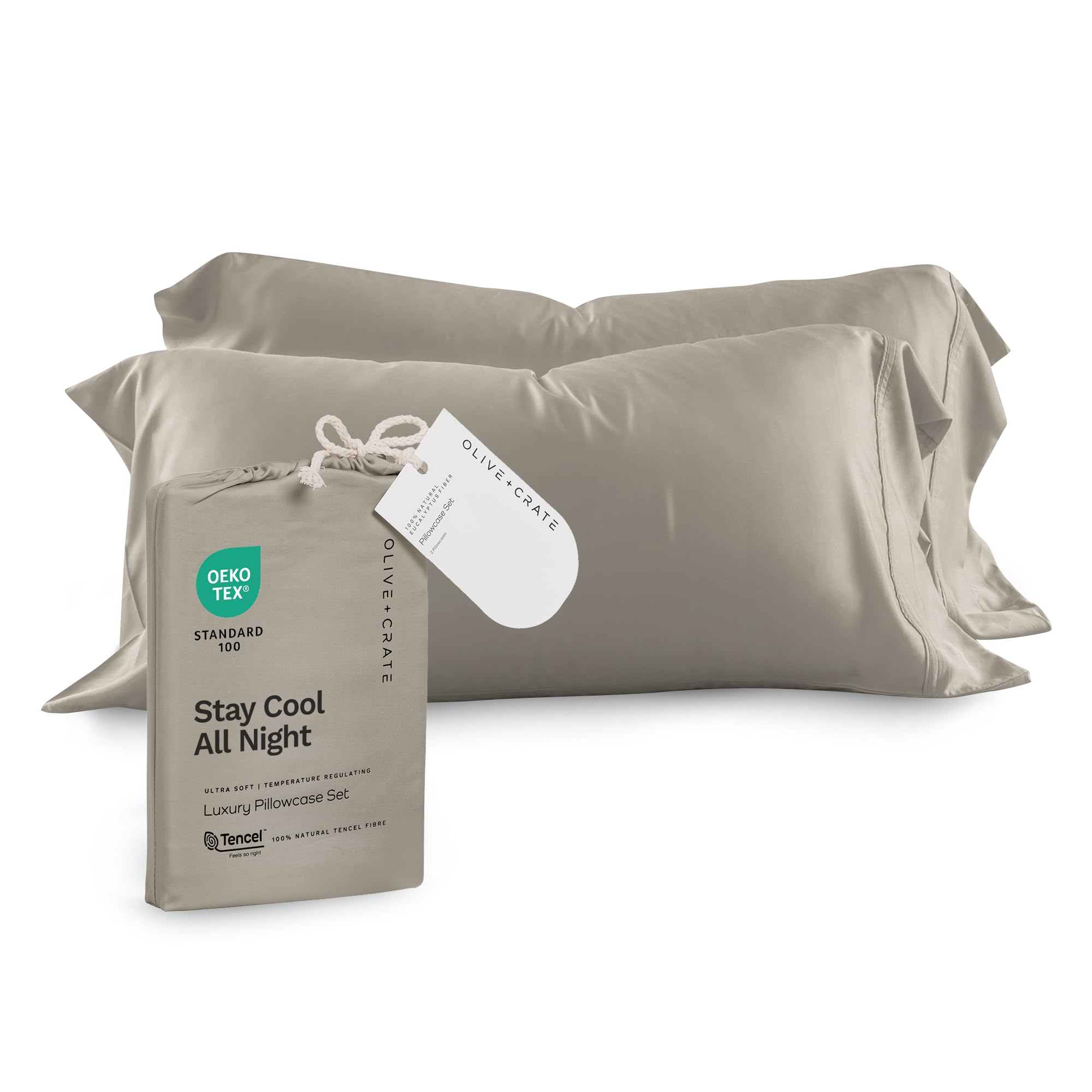 ![Olive + Crate Tencel Eucalyptus Pillowcases - 100% Tencel Lyocell Cooling Pillow Cases for Hot Sleepers - Hypoallergenic, Moisture-Wicking, Silk Alternative, Vegan - King Size Set of 2 [Moss]: Taupe Sand Queen](https://m.media-amazon.com/images/I/717hfawZQWL.jpg)