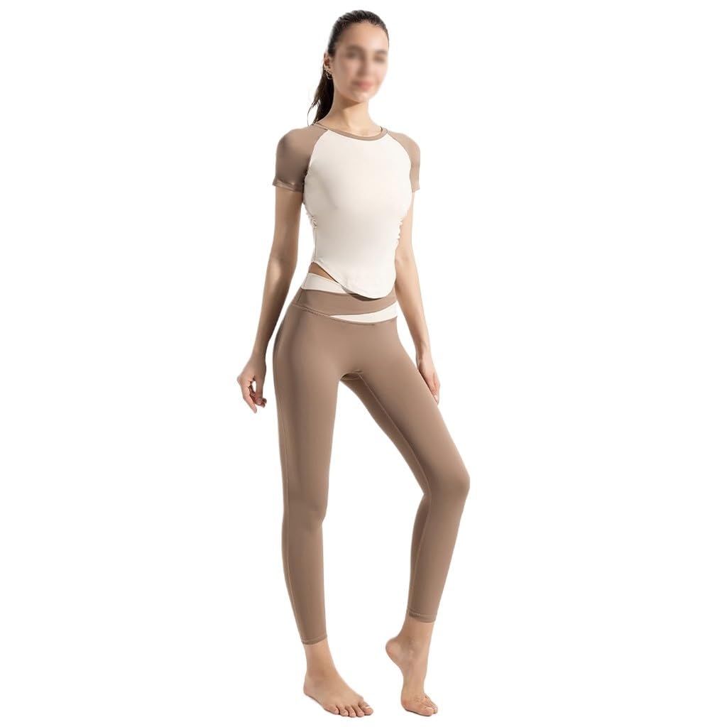 AFPSDLFJDLS Yoga Suit Short Sleeved T-Shirt Set with Abdominal Tightening and Hip Lifting Fitness Pants(2XL)