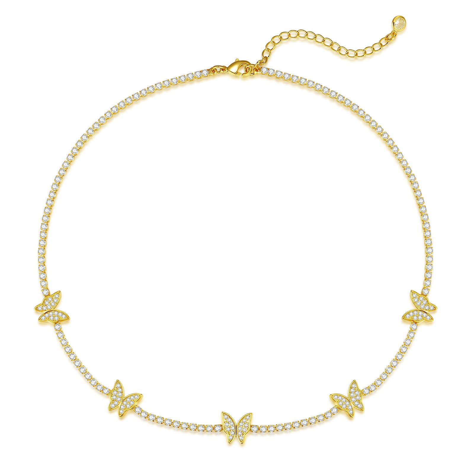 Luxval Tennis Necklace 14K Gold Plated Rhinestone Butterfly Choker Necklaces for women Dainty Zirconia Cut Faux Diamond chain 3mm: Gold-butterfly