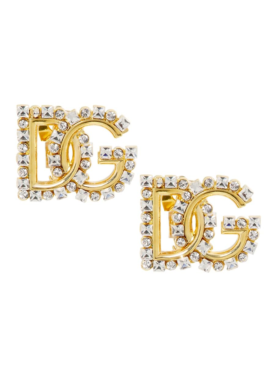 Dolce&Gabbana, Goldtone Or Silvertone & Glass Crystal Monogram Clip-On Stud Earrings