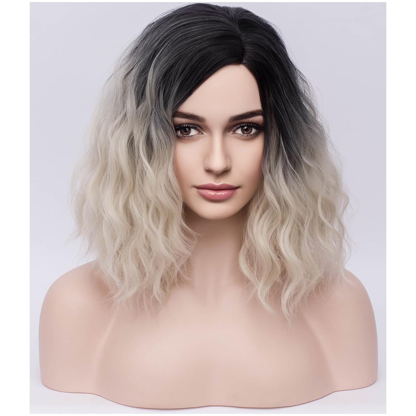 BERON Wigs for Women Short Curly Bob Wavy Wig Girls Ombre Green 14" Body Wave Shoulder Length Hair Wig Heat Resistant Synthetic Halloween Cosplay Daily Party Wigs