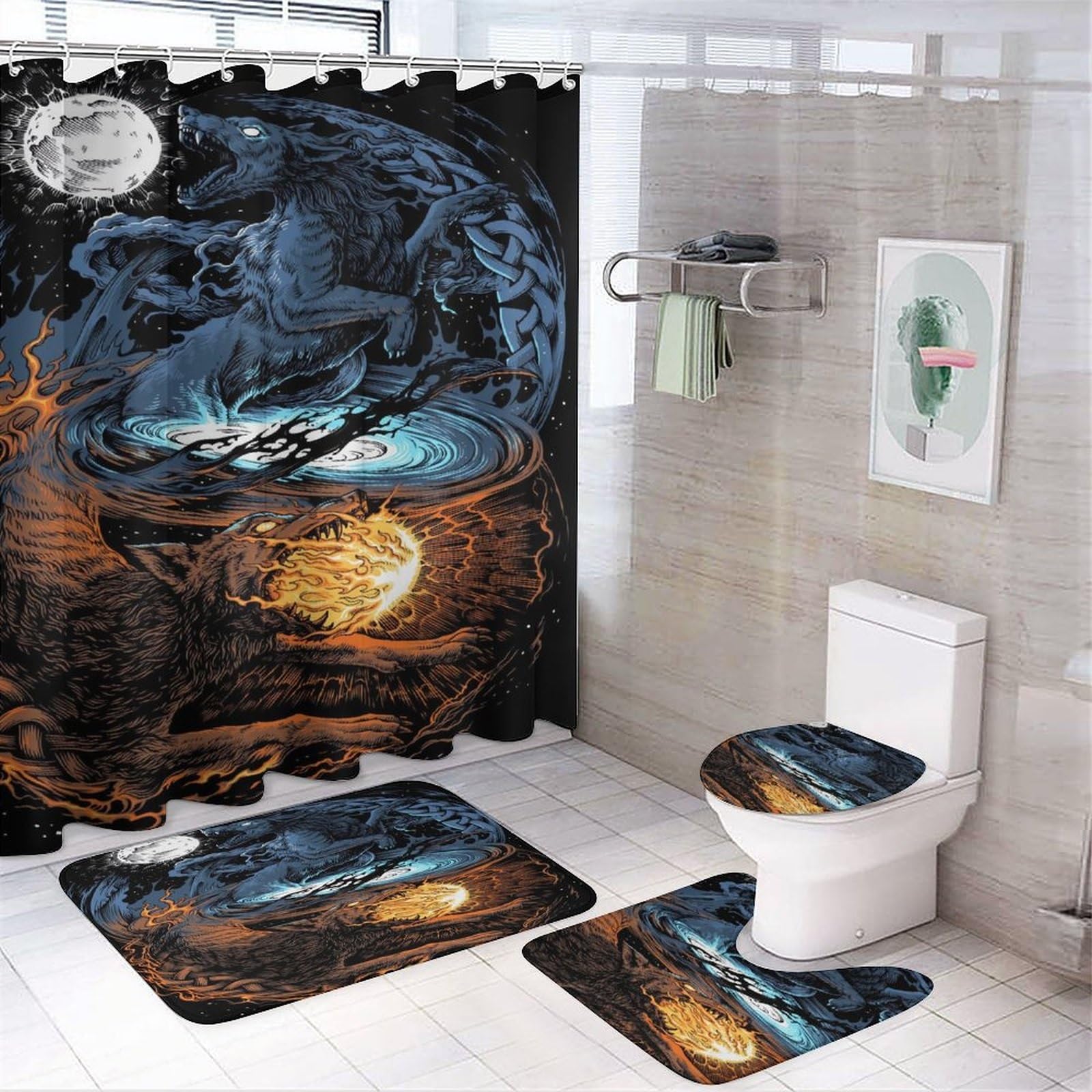 LDZDGD 4PCS Norse Viking Shower Curtain Set, Celtic Pagan Bathroom Art Decor, Waterproof Shower Curtain, Non-Slip Rugs, Toilet Lid Cover and Bath Mat (Color : Valkyrie, Size : 183 x 183CM)
