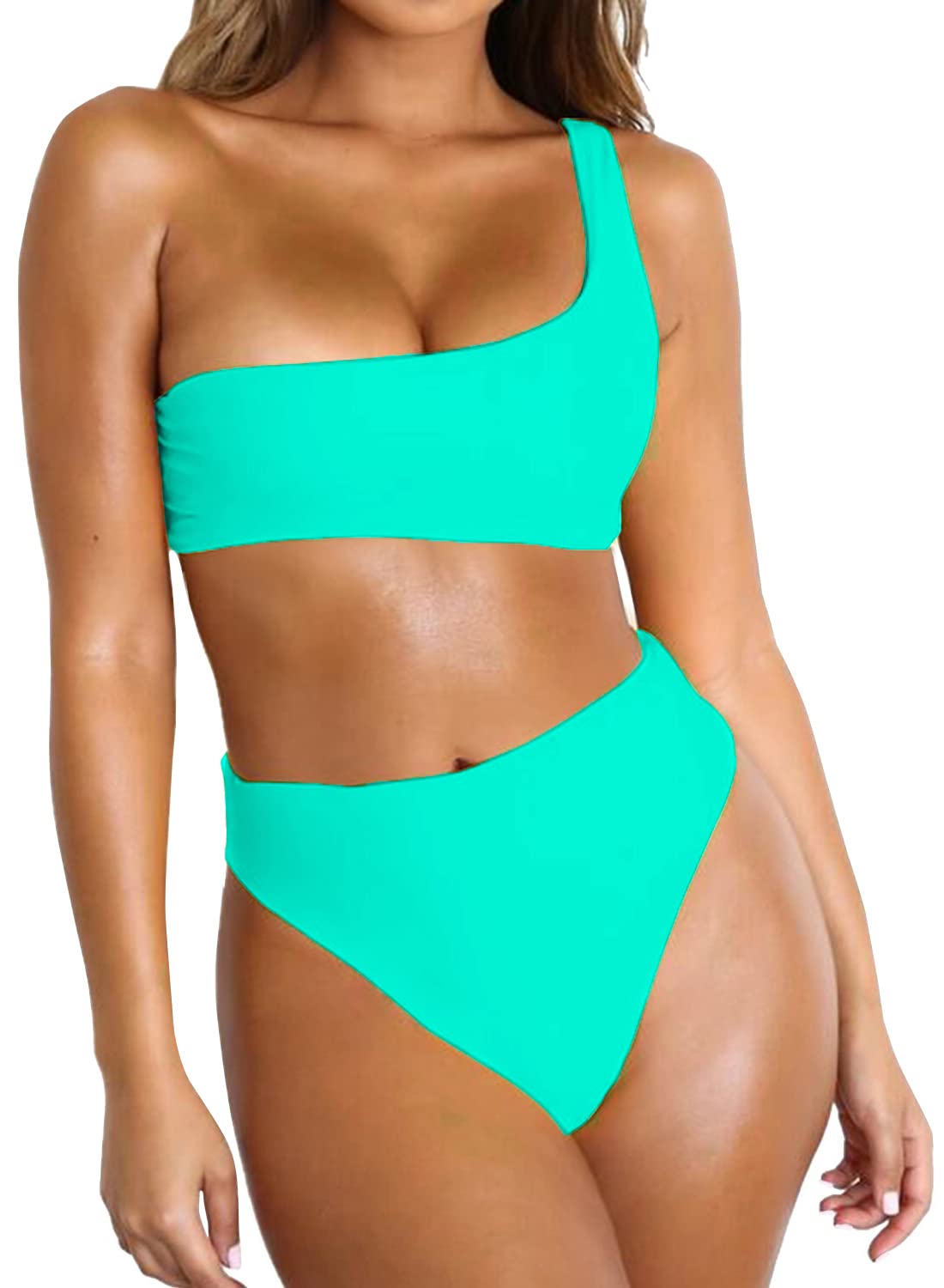 Byoauo Womens Bikini One Shoulder Top with High Waisted Bottom Two Piece Swimsuits