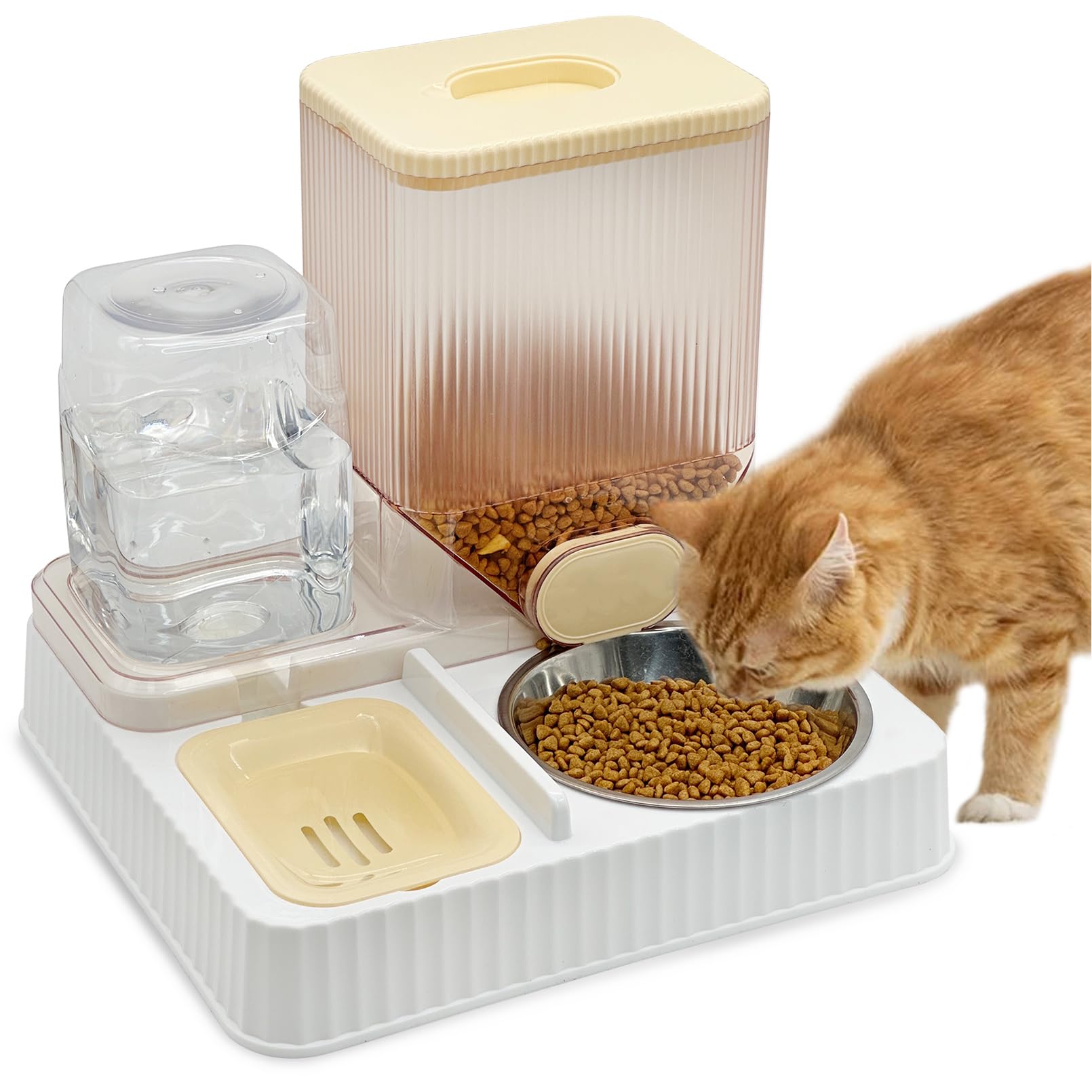 Fhiny Gravity Cat Feeder and Water Dispenser, 2 in 1 Automatic Pet Waterer Detachable Stainless Steel Food Bowls Set Pet Food Storage for Small Dog Puppy Cat Kitten Pet Easy Clean (Grey): Style E Yellow-Metal Bowl