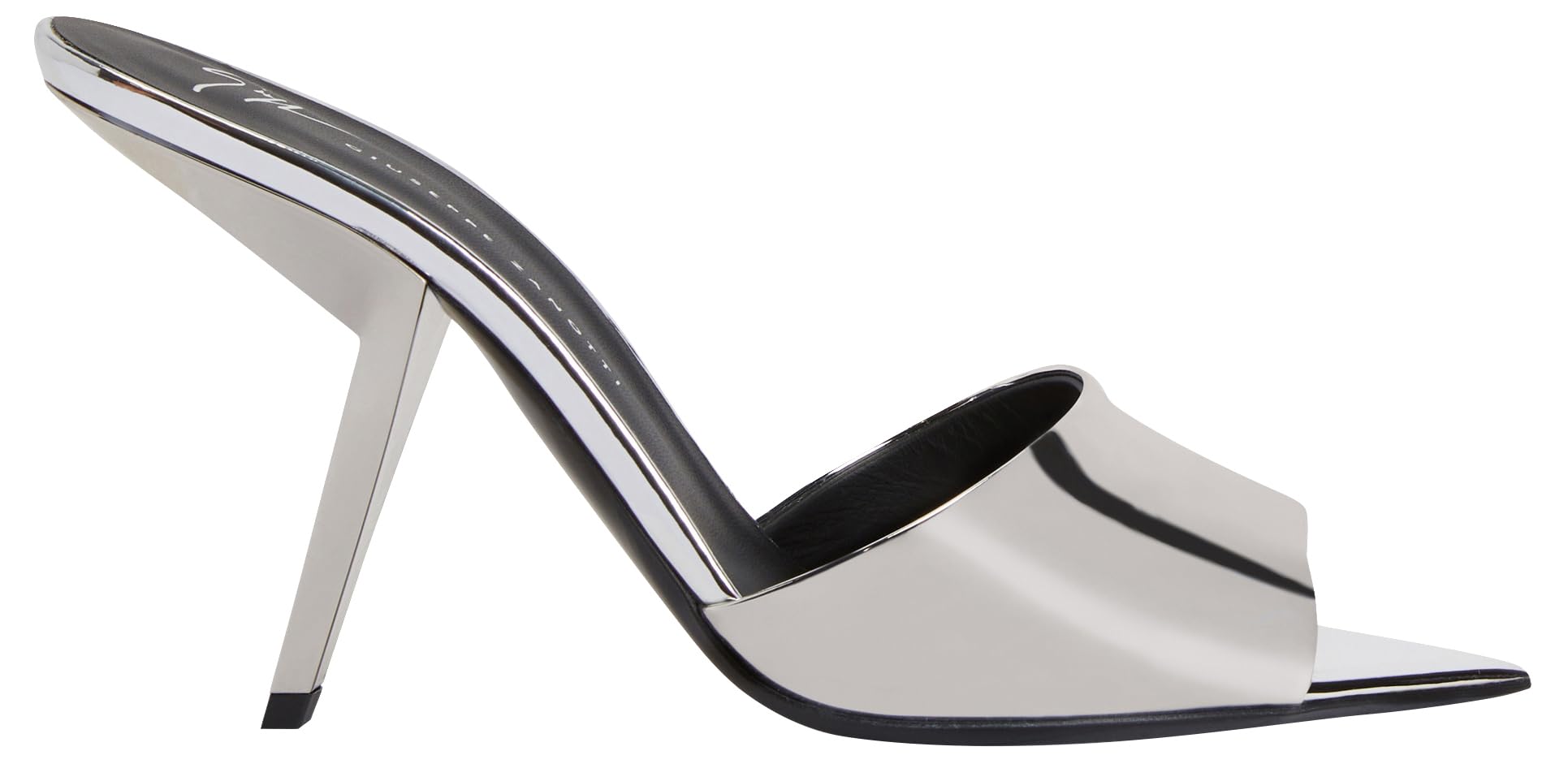 These pointed-toe mules, crafted from clear PVC, feature black lacquered comma heels embellished with crystal rhinestones and black leather soles. Imported Beige patent leather Beige lacquered 90 mm heel Black leather sole with logo