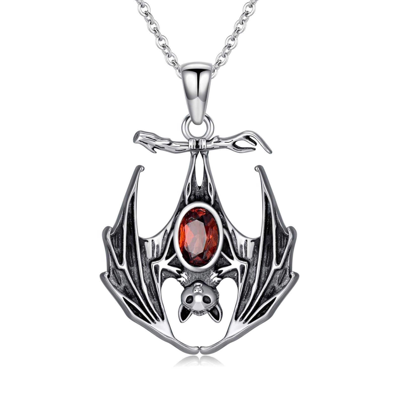 Jewelry is the nice friends for women. Jewelry will express what you want to say.The black vampire bat flying in the sky.Looks a little scary, aggravate the atmosphere of the excitement and scary Halloween night,isn't this what you want most for the carnival night?Package1 x Bat necklace1 x Gift box1 x Polishing cloth DESIGN - Gothic black hanging bat necklace, with a strong sense of mystery and weirdness, and the horror atmosphere it creates is very suitable for Halloween.This bat necklace may be absolutely perfect for October but it can easily be worn all year round by anyone with a love for these amazing little dark loving creatures 925 STERLING SILVER - Our black bat necklaces are made from 925 sterling silver, it will not turn your skin green, red, or itchy, comfortable to wear and no harm to sensitive skin SIZE - Pendant size: 0.78*0.87 inch/19.8*22.2 mm. Natural oval garnet size:6*4 mm.Chain length: 18inch with 2inch adjustable extender FOR HER - The sterling silver bat necklace with elegant box,as a good gift for your lover, wife, mother or yourself, especially on Halloween CUSTOMER SERVICE - We are sure you will love our gothic jewelry, and if for any reason you are not happy with your choice,please contact us