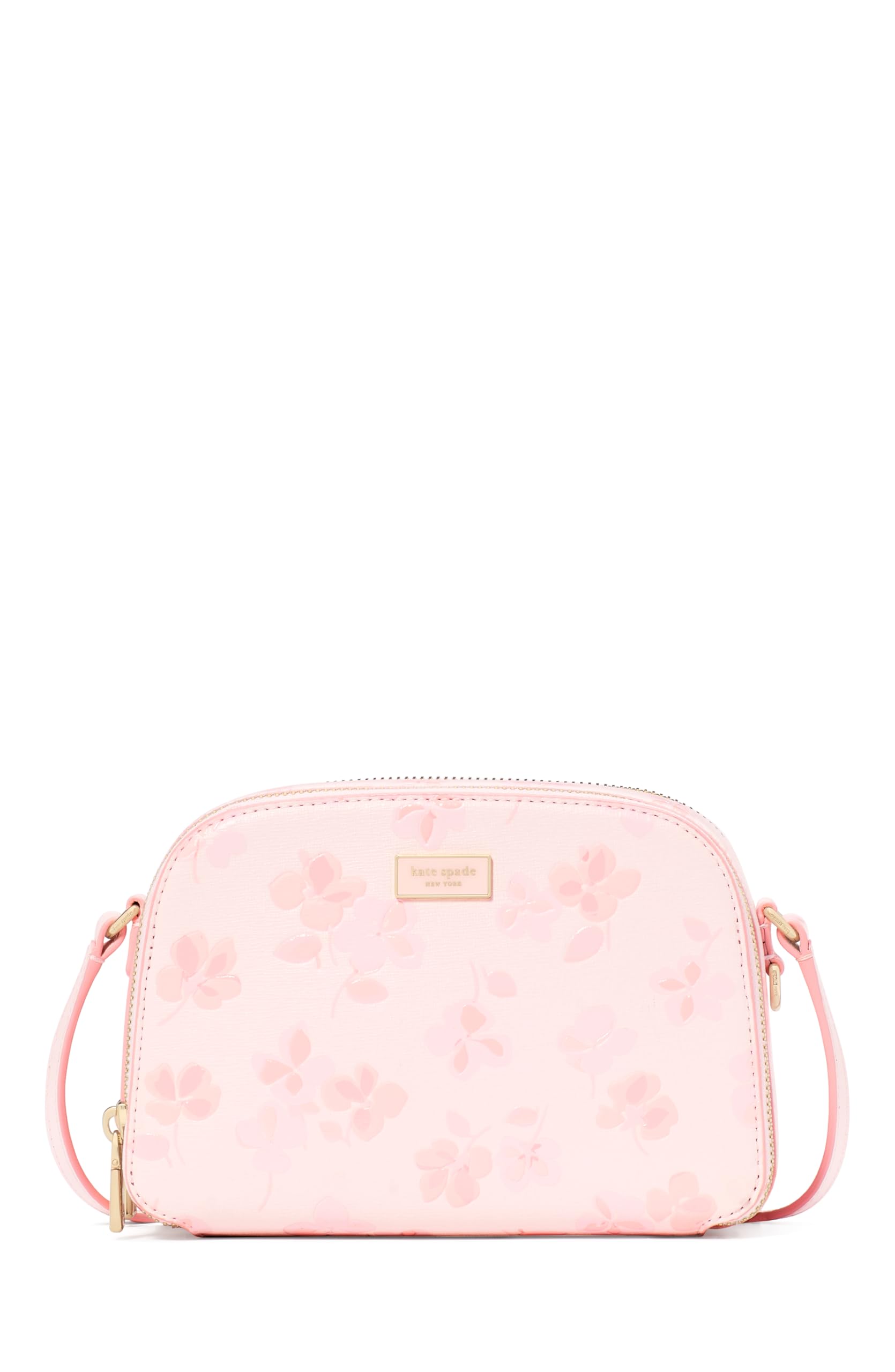 kate spade new york Serena Spring Pansies Embossed Saffiano Leather Double Zip Dome Crossbody, Blush Cloud Multi