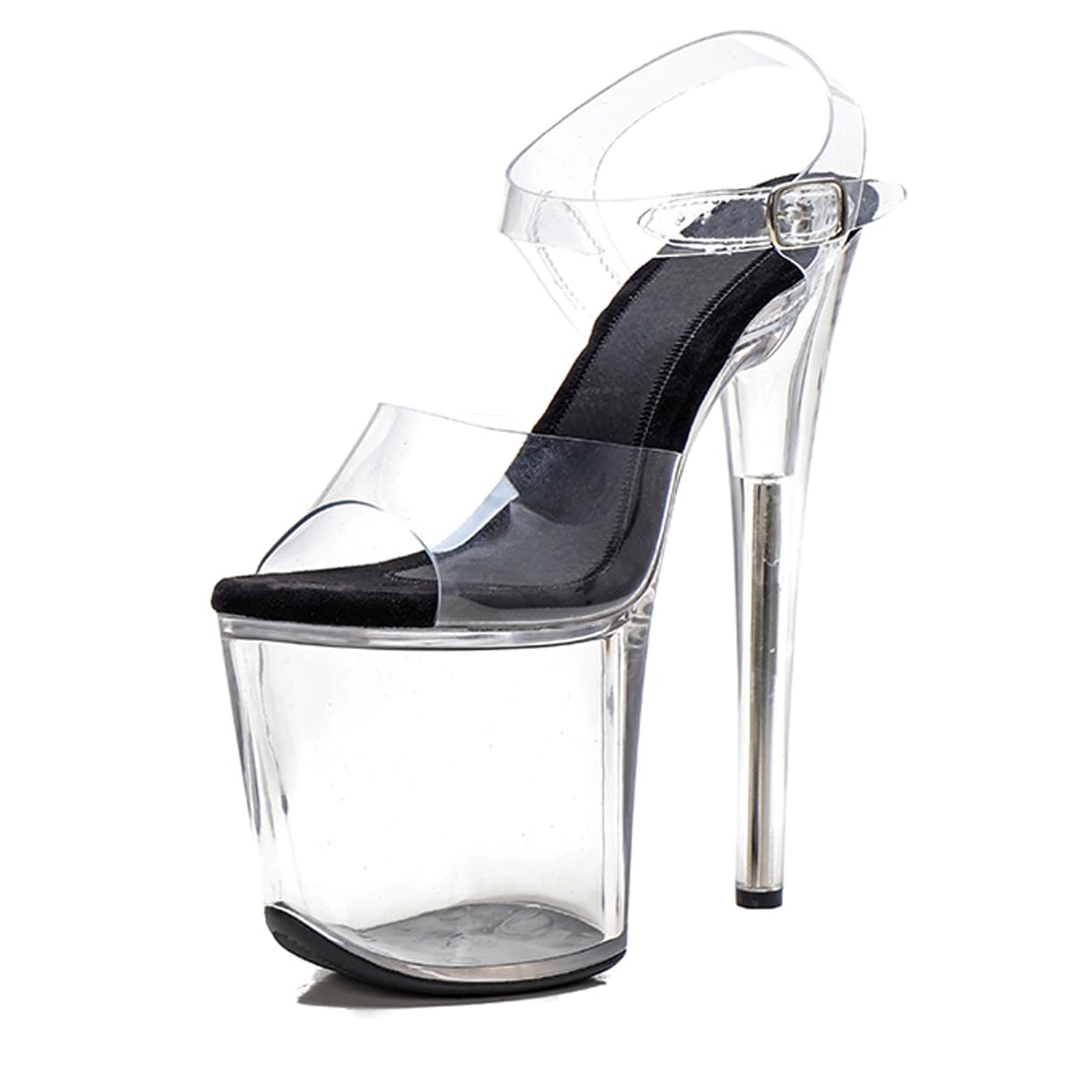 WUXIN H&P Women Stripper Heels Pole Dance Sandal 20CM 8 Inch Platform Fashion Stiletto Clear TPU 8 Inch Ankle-Strap Exotic Custom High Heel Round Toe Sexy model shoes: 4 Black