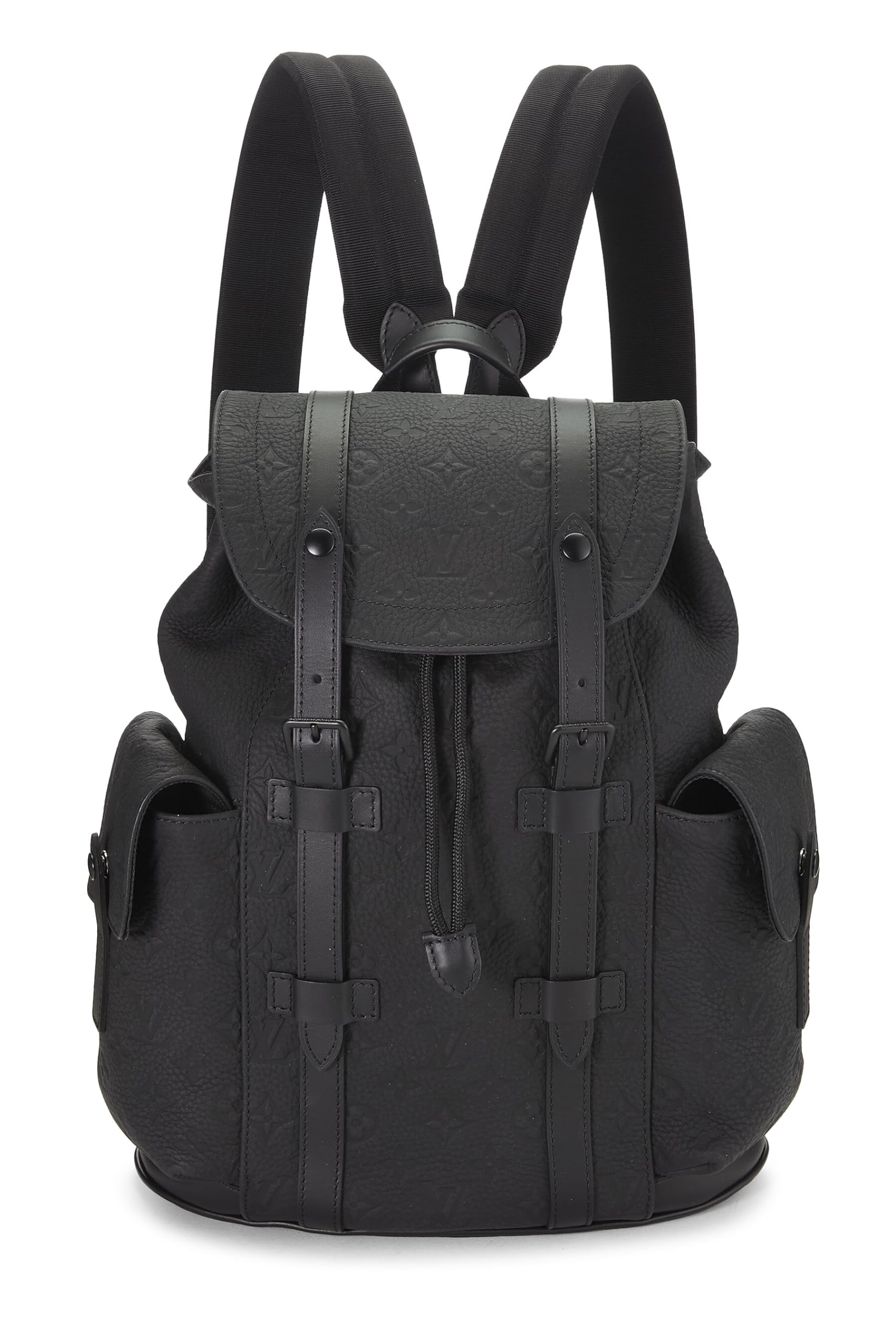 Timeless backpack that easily fits most paper sizes, making it the perfect work-ready bag. The Christopher PM is rendered in Louis Vuitton's iconic Monogram Taurillon leather and accented with black hardware. Imported Pre-Loved Condition: Excellent; Faint scuffs on hardware Length: 12.25" (31 cm), Height: 114.5" (290 cm), Depth: 3.75" (9 cm) Made in France Two Leather Shoulder Straps Drawstring And Buckle Closures