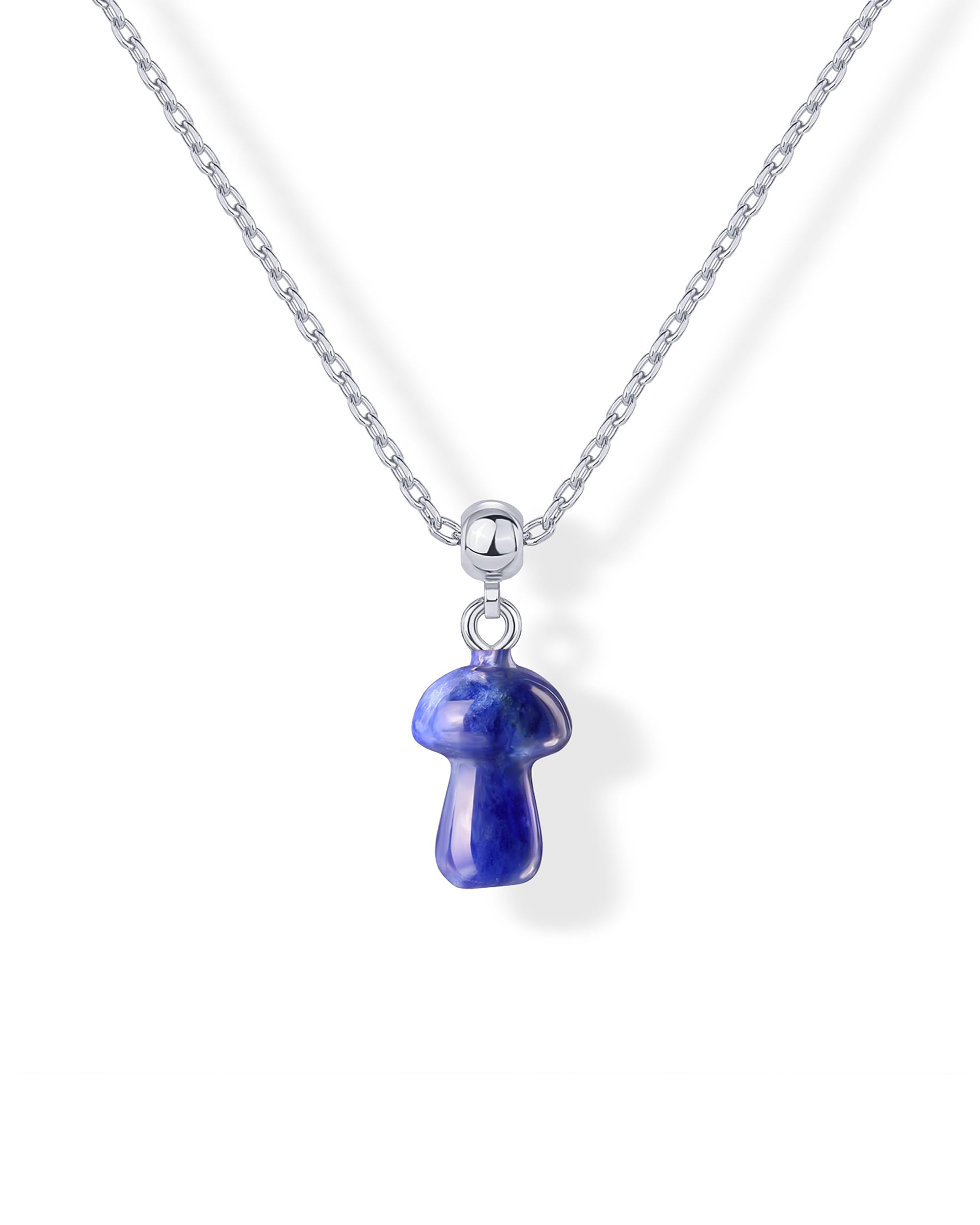 PAVOI Gemstone Gold Charm Necklace for Women - 14K Gold Plated Adjustable Chain Dainty Pendant Gemstone Necklaces with Cute Charms Set - Hypoallergenic Trendy Healing Crystal Pendants: White Gold Mushroom - Sodalite