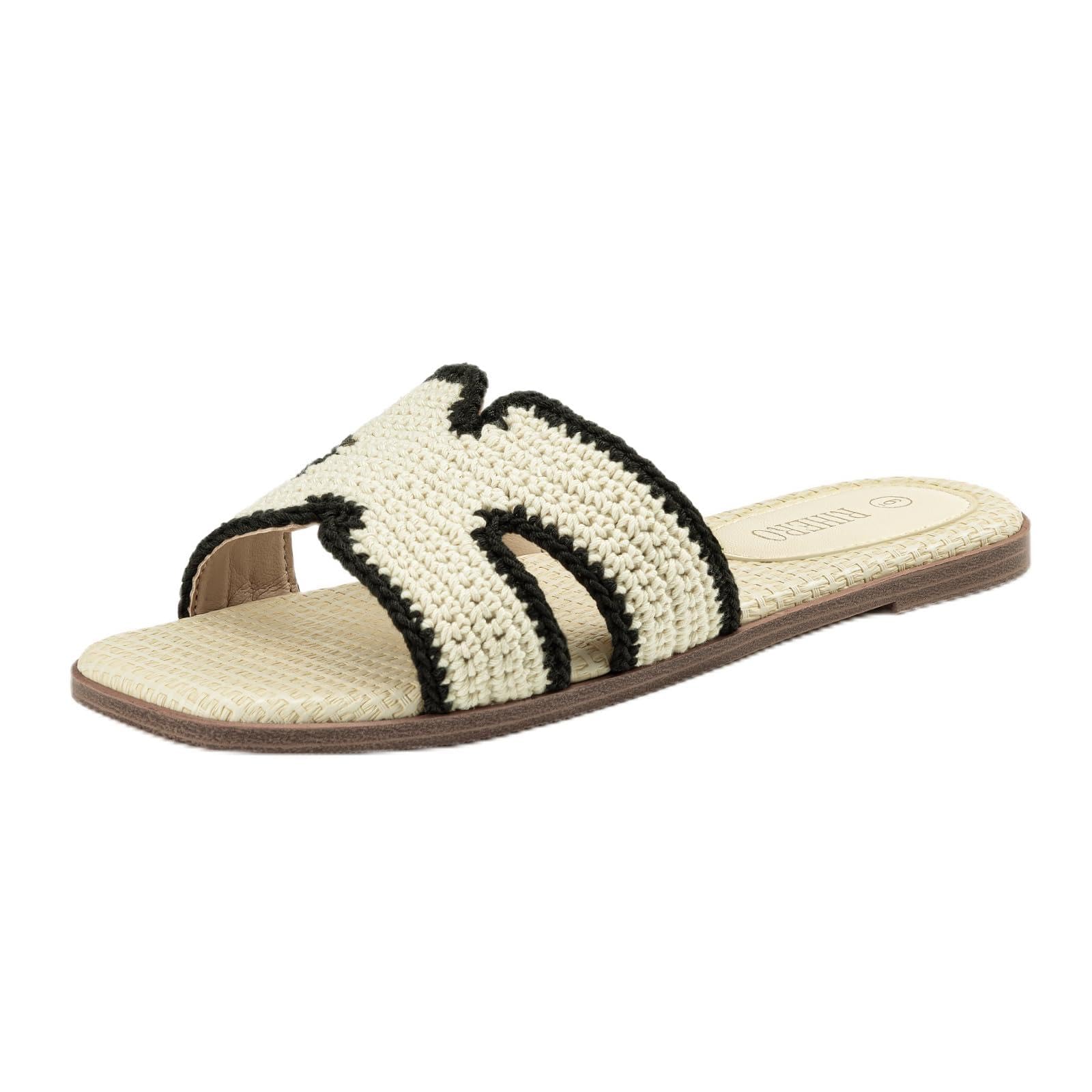 Rihero Women's Dressy Flat Sandals Comfortable Slip On Leather Slide Sandals: 7.5 Cream