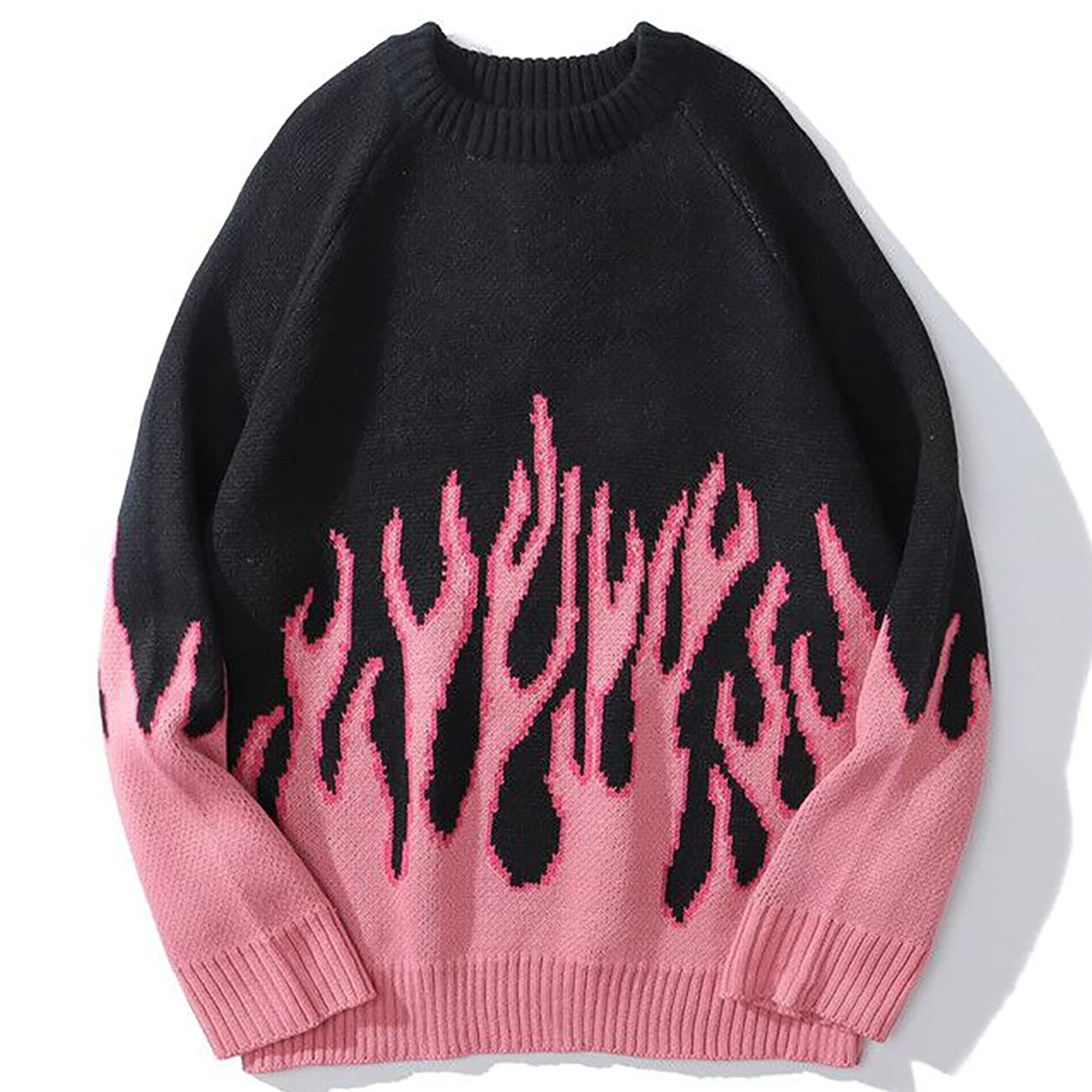 Vamtac Womens Crewneck Oversized Sweaters Y2K Aesthetic Flame Graphic Knitted Sweater Casual Pullover Long Sleeve Jumper