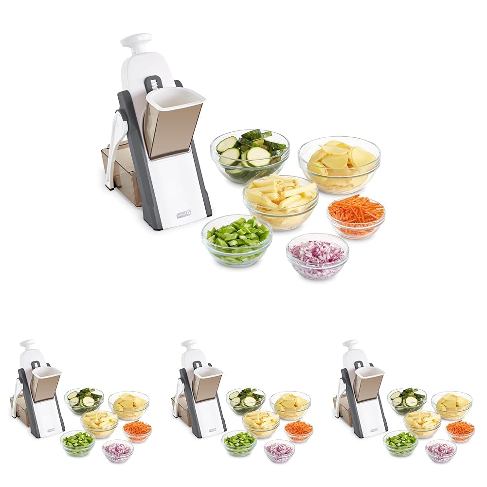 Dash Safe Slice® Mandoline - Compact, Foldable Food Slicer - Slice, Dice, Julienne & More - Perfect for Quick Food Prep - Recipe Guide Included - Aqua: Gray 30+ Presets (Pack of 4)