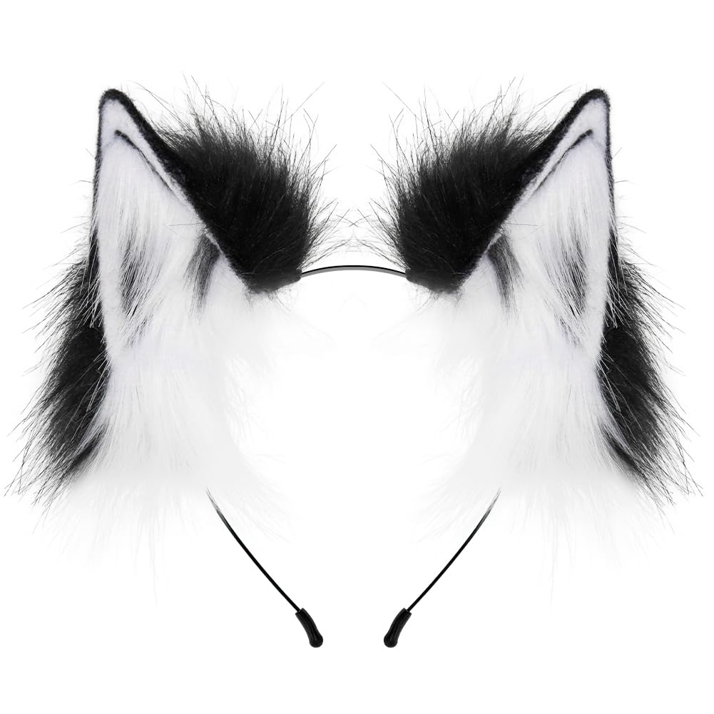 QinRuan Fox Cat Long Fur Ears Hair Headwear Wolf Animal Anime Halloween Cosplay Costume: Blackw-03