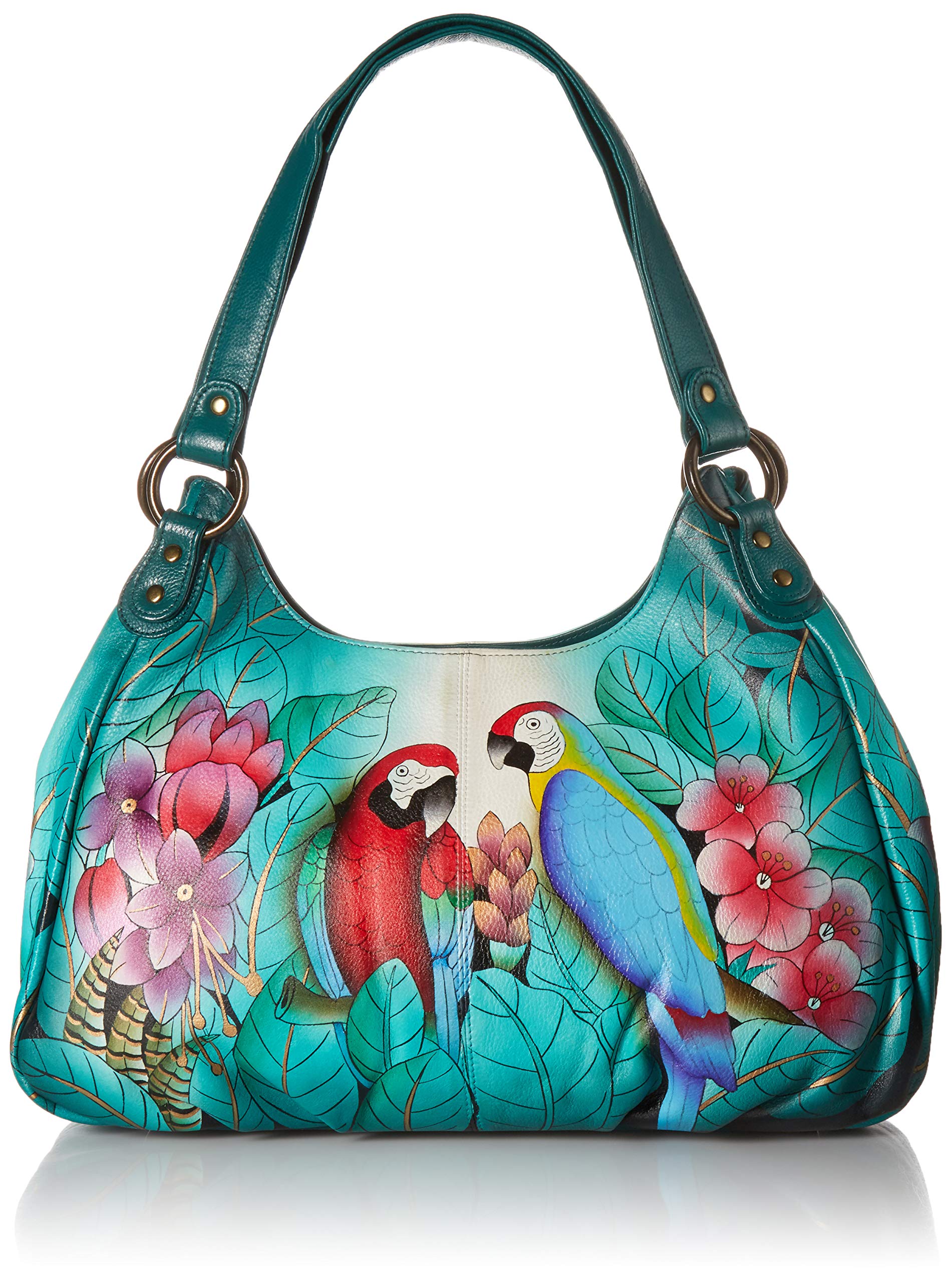 Carry essentials in style with this Anna by Anuschka Leather Hobo Handbag. Adorned with hand painted original artwork, the genuine leather exterior features a convenient top zippered entry. It’s the perfect carryall and features plenty of internal space to hold personal essentials for your daily commute or a day of running errands. The main compartment includes inside wall pockets and two external side pockets to keep keys, phones, and glasses easily within reach. This functional accessory is a must have handbag for the woman on the go. Please note, they say that imitation is the most sincere form of flattery, but when it comes to counterfeit or imitation Anuschka creations, we are not flattered and you should steer clear! We want to help protect you from buying counterfeit products and knockoffs. The presence of knockoffs in the market is an unfortunate reality for almost any high-end and innovative brand. We are taking action on multiple fronts to counter companies that are selling cheap imitations of our products. Always pay attention to the details to ensure you are buying an original. • Purchase the item at an authorized reseller. • Feel the leather. If it is soft, supple and feels luxurious, it’s probably authentic. • There will be a leather tag stitched to the lining with our logo. • The lining will have our logo woven into it. • The quality of art is a great way to tell if the product is genuine. The colors should be rich and vibrant, reflecting the passion behind the art. • Each original Anuschka is hand signed by a member of the family. Fabric type Leather Origin Imported Closure type Zipper Lining Polyester Country of Origin India HAND-PAINTED PREMIUM HANDBAG: Art-inspired handbags for women; this premium leather ruched hobo bag gets softer and more supple with use; top zipper entry, rear zippered pocket and cell pocket keeps contents securely in place GENUINE LEATHER: Pliant and organic 100% cowhide full-grain leather fully absorbs paint for exquisite design making; our skilled artisans have only the best materials to work with to create stunning works of art BEAUTIFUL VIBRANT DESIGNS: Each handbag is a little piece of art hand painted by talented artisans; inspired by nature and vintage art themes, these premium leather hand bags make a perfect gift VERSATILE DOUBLE HANDLE: Top handle hobo bags provide versatility and style to any outfit; this versatile and strong leather strap has a 11.5-inch drop FUNCTIONAL DESIGN: Inside 1 zippered wall, multi-purpose, and cell pockets; main compartment provides plenty of storage space; 15 x 9.25 x 4.5 inches (38 x 23.5 x 11.5 cm), 2.03 lbs. (0.92 kgs)