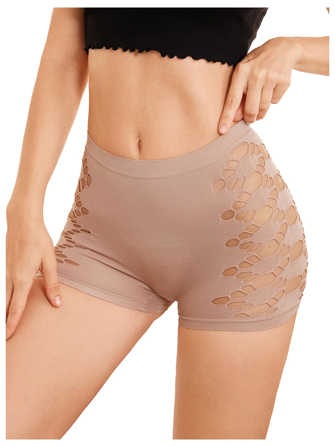 OYOANGLE Women's Cut Out Mid Rise Boyshort Panties Solid Plain Criss Cross Seamless Underwear: X-Large Apricot
