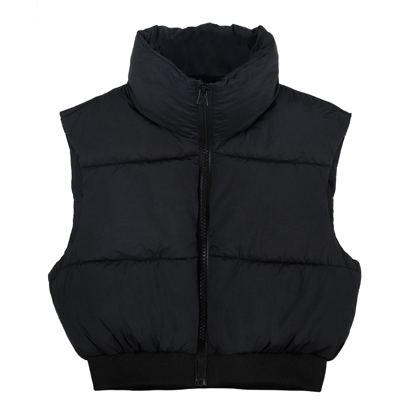 Kissonic Women's Padded Down Vest Puffer Stand Collar Zip Up Crop Sleeveless Jacket