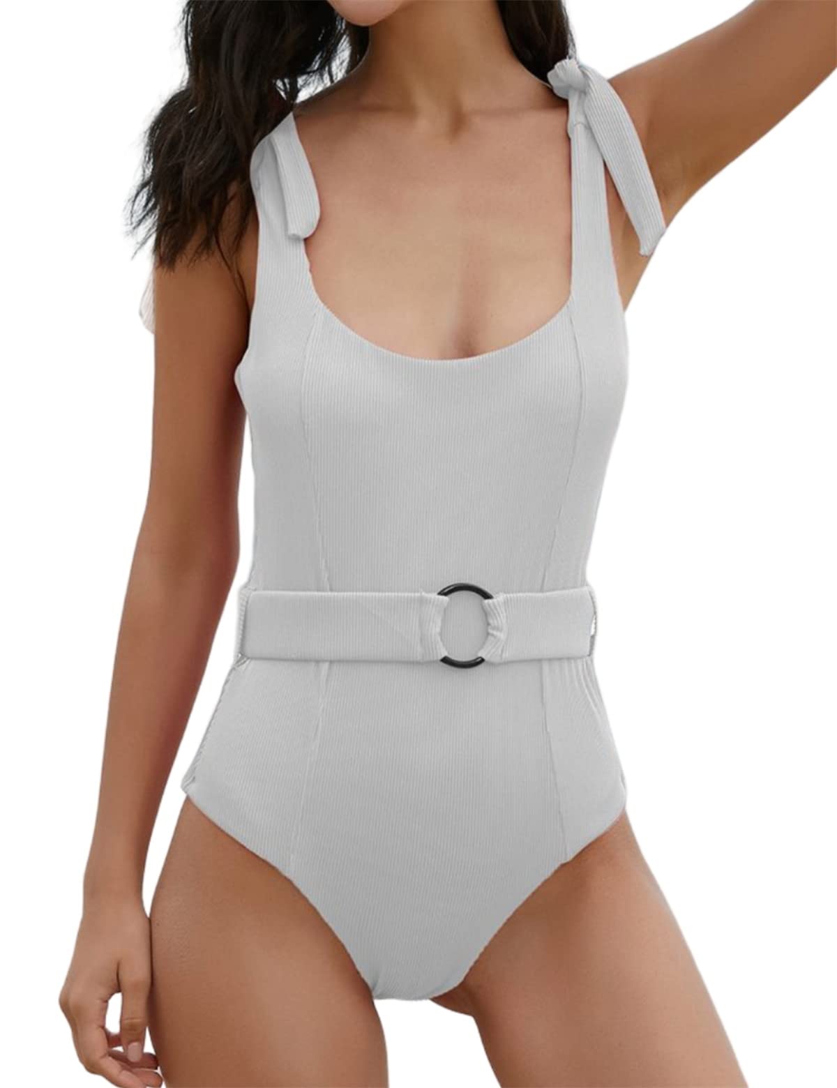 Women's One Piece Swimsuits Belt Tummy Control Bathing Suits Tie Shoulder Monokini Material: This women's ribbed swimsuit is mainly made of 80% polyester. It is made of high-quality swimsuit materials, comfortable to wear, and will not see through. Style: Unique bow-knot strap swimsuit, adjustable straps make your top fit better, make you look more elegant and cute. Features: High cut design, makes the legs look longer. The belt around the waist helps to tummy control and hide your mom belly. Women's one-piece swimsuits have built-in removable padding to provide good shape and support. Occasion: This one-piece swimsuit is suitable for vacations, honeymoons, beaches, swimming pools and cruise ships. Size: S、M、L、XL、XXL.(Please Refer to Our Size Chart for Specific Measurements to Achieve the Perfect Fit) Washing: Wash regularly. It is recommended to use cold water. Do not use bleach. Don't dry it. Note: Depending on the settings of the computer and monitor, the color may be slightly different. ❤Material: Made of 80% polyester, comfortable to wear, and will not see through. ❤Style: Unique bow tie swimsuit, adjustable shoulder straps make your top fit better, making you look more elegant and cute. ❤Features: High cut design, makes the legs look longer. The belt around the waist helps to tummy control and hide your mom belly. ❤Occasion: This one-piece swimsuit is suitable for vacations, honeymoons, beaches, swimming pools and cruise ships. ❤Washing: It is recommended to use cold water. Do not use bleach. Don't dry it.