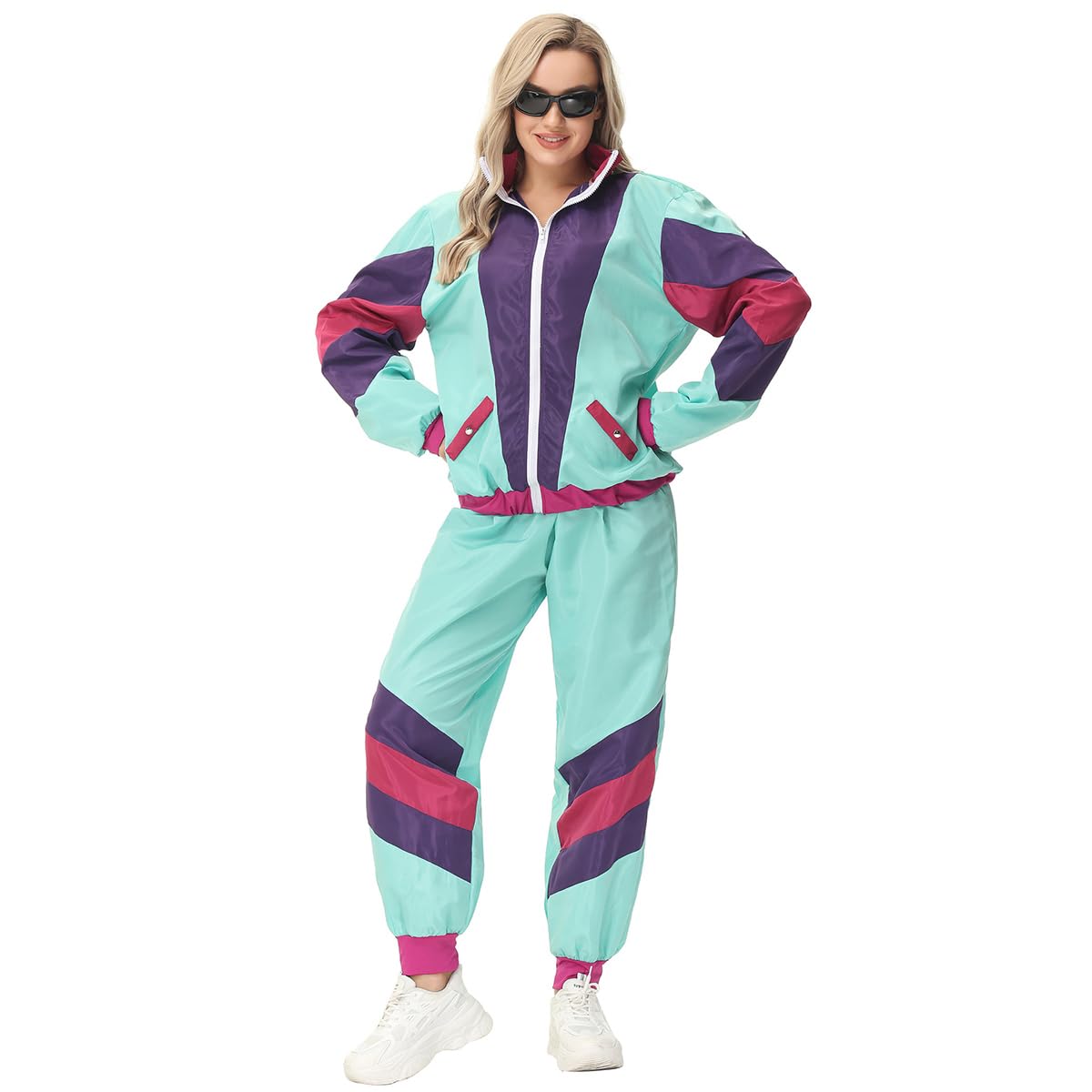IMEKIS 80s Tracksuit for Women Men Retro Hip Hop Windbreaker Halloween Cosplay Disco Tracksuit 90s Shell Suit: Medium Mint Green