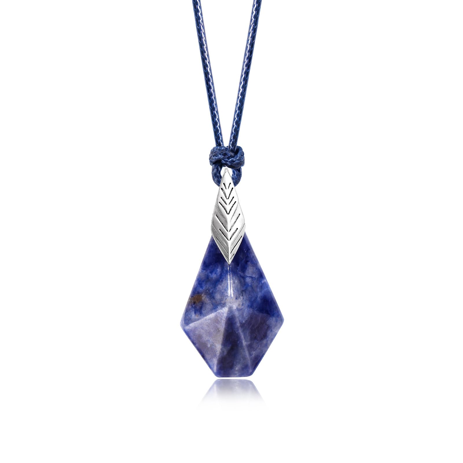 AWNL Sodalite Pendant Necklace for Men Natural Gemstone Sterling Silver Pendant Necklace with Stainless Steel Chain Waxed Cord Gift for Men