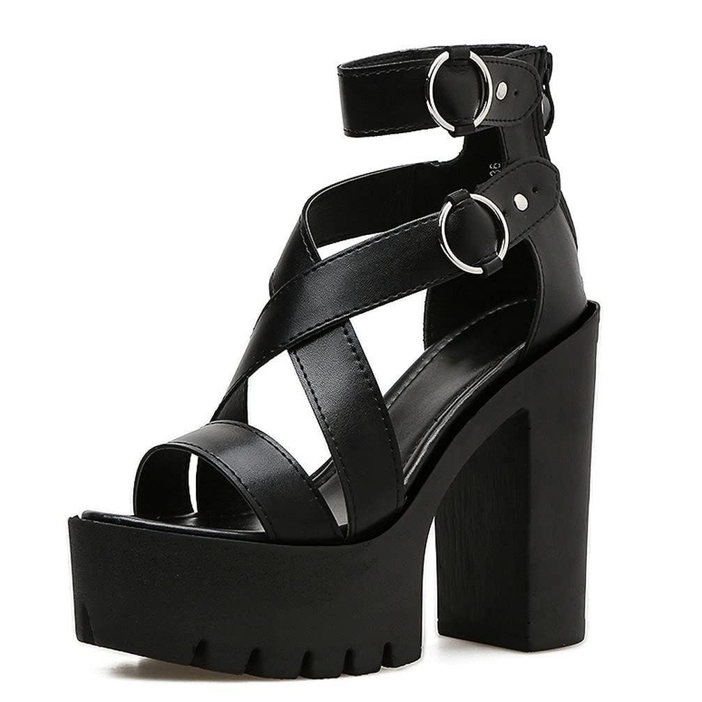 KOKOMOMO Womens Gothic Platform Roman Sandals Chunky High Heels Cross Ankle Strap Buckled Summer Shoes Round Open Toe Gladiator Chunky Heeled Sandals with Zipper *Style: Women's Heeled Sandals *Upper Material: Synthetic *Inner material: Synthetic *Heel type: Chunky Block heel *Heel height: 13 cm / 5.12 inches *Platform height: 5 cm / 1.97 inches *Toe style: Round toe *Closure type: Buckle and back zip-up *KOKOMOMO offers the quality at affordable price and confidently ensure the prestige quality of our product. Over the years, it has been well received by buyers. We carry a diverse and wide range selection of the latest trends and hottest mode fashion such as Boots, Military Style, Espadrilles, Flats, Lace-Ups, Loafers & Slip-Ons, Pumps, Sandals, High Heels, Platforms, Casuals, Dress Shoes, Oxfords, and many more. *Makes every pair of KOKOMOMO shoes a good partner of you, offering the best possible wearing experience. →Stylish and Comfortable: This style runs true to size perfect fit. Flexible construction gives you the freedom to move comfortably, back zipper and buckled the easy slip-on design. →Non-Slip: The non-slip outsole delivers grip and durability, making it perfect for indoor and outdoor activities. →Size: Heel Height: 5.12 inches/13 cm; Platform Height: 1.97 inches/5 cm. →Occasion: Fit for a wedding, prom, evening, birthday party, cocktail, club, homecoming, graduation, and any other special formal occasions. →Must-Have in Every Girl's Closet: These fashion cross strappy gladiator roman sandals round-toe platform chunky high heeled sandals are full of luxury and fashion. It is simple but elegant, reflect the graceful figure of women. Every step you take wearing it will attract all the attentions.