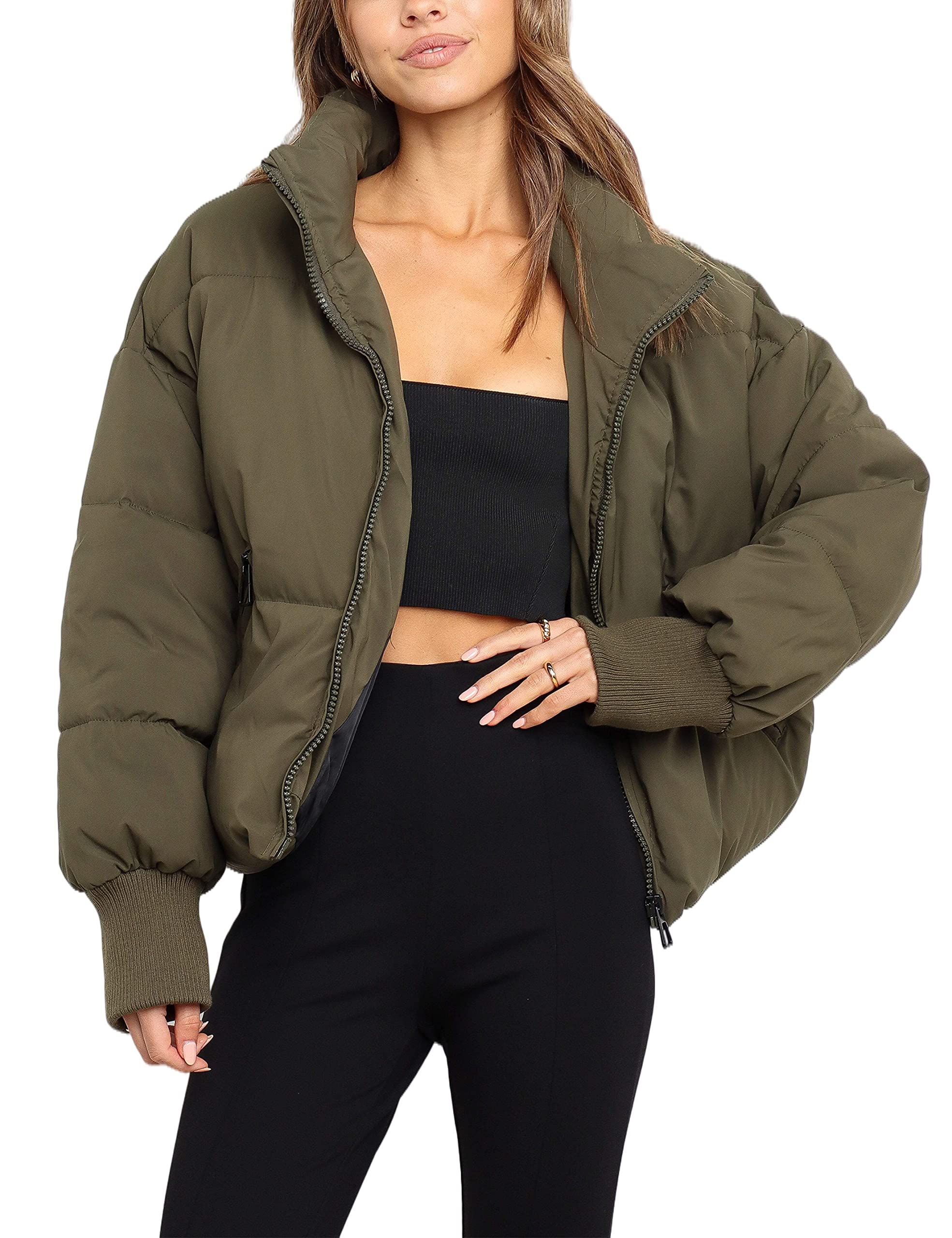 Fashion lightweight winter warm puffer jacket, black puffer jacket women, puffer coat, black puffy jacket, olive green puffy woman, oversized puffer jacket women Material: Made of high-quality fabrics, soft and leightweight, warm and comfy to wear Design: Front zipper closure, two zippered side pockets, stand collar, full zipper design, long sleeve with elasticised ribbed cuff, bottom drawstring, fluffy soft feel, loose fit Occasion: Padded zip up casual jackets for women, great for skiing, snowboarding, outdoor exercise, traveling, shopping, street, holiday, casual wear during the autumn, winter, or early spring Match: Comfy baggy cropped puffer Coat for women can pair with basic shirts, sweaters, jeans, dresses, heels or knee boots for a glamorous look. This crop jacket will complete your outfits instantly and keep you comfy, trendy and warm, perfect for everyday and night-outs