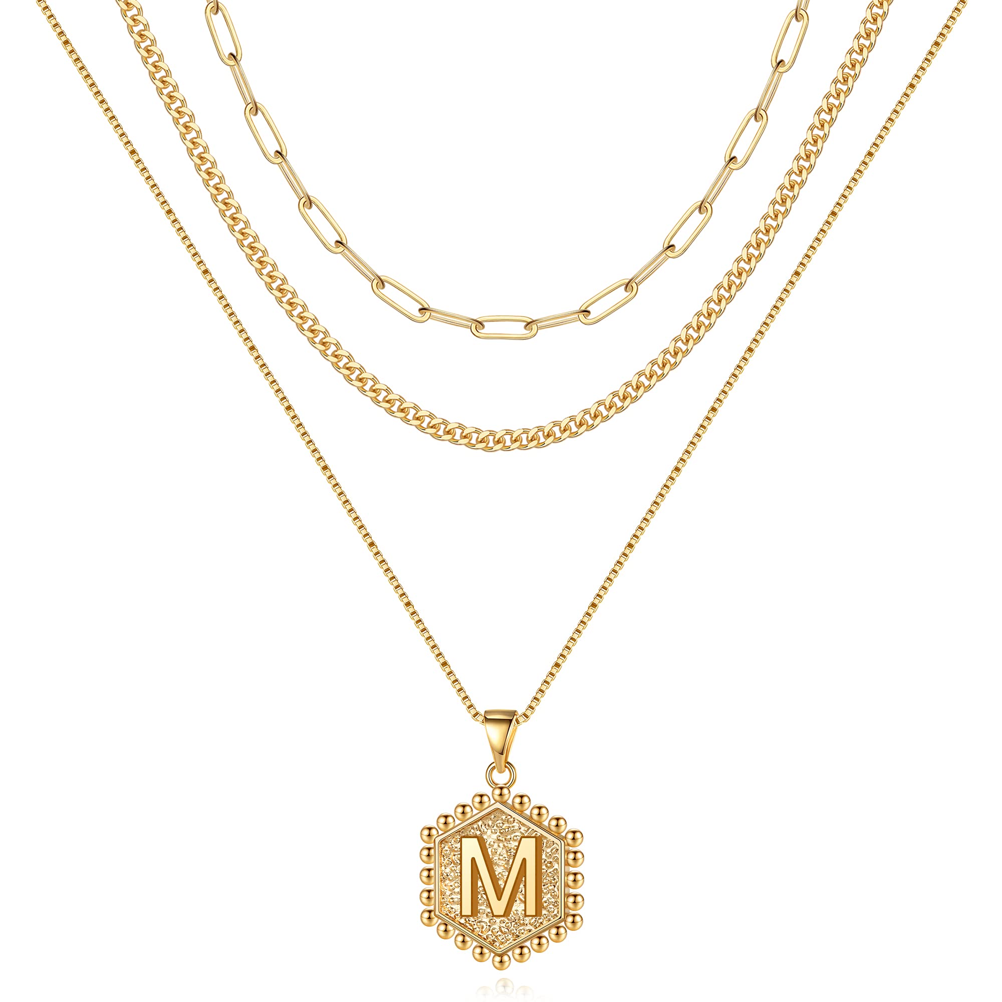 Recommended Age Grading : 6+. SIZE: 14"+ 2"/16"+2" /21"+2"3 pcs layered initials necklaces with Hexagonal pendant with initials, adjustable, suitable for both women. Recommended Age Grading : 6+. MATERIAL:layered initial Necklace engraved with letter M,14k Gold Plated, layered initial necklaces, minimalism style, dainty pendant necklaces. PERFECT GIFTS: This Gold Necklace is beautifully packaged and ready for gifting to her on Mother's Day, Christmas gifts, birthday parties, anniversary, weddings,etc. MEANING:Initial Necklace is a special Gift let her know she's always connected to you just like these Letter Name.When she wears this necklace she'll have a reminder of her strength and that you are always there for her. AFTERSALE SERVICES:If you have any questions about the layered necklaces, please feel free to contact us. We will answer you within 24 hours.