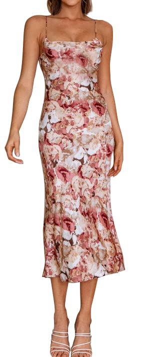 Tsher Women's Sleeveless Spaghetti Strap Satin Wedding Guest Party Dress Cowl Neck Backless Midi Formal Dresses