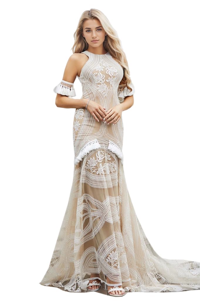 LIPOSA Romantic Ivory Lace Wedding Dresses for Brides V Neck Backless Cap Sleeves Sheath Boho Bridal Gown for Bride: 16 Ivory