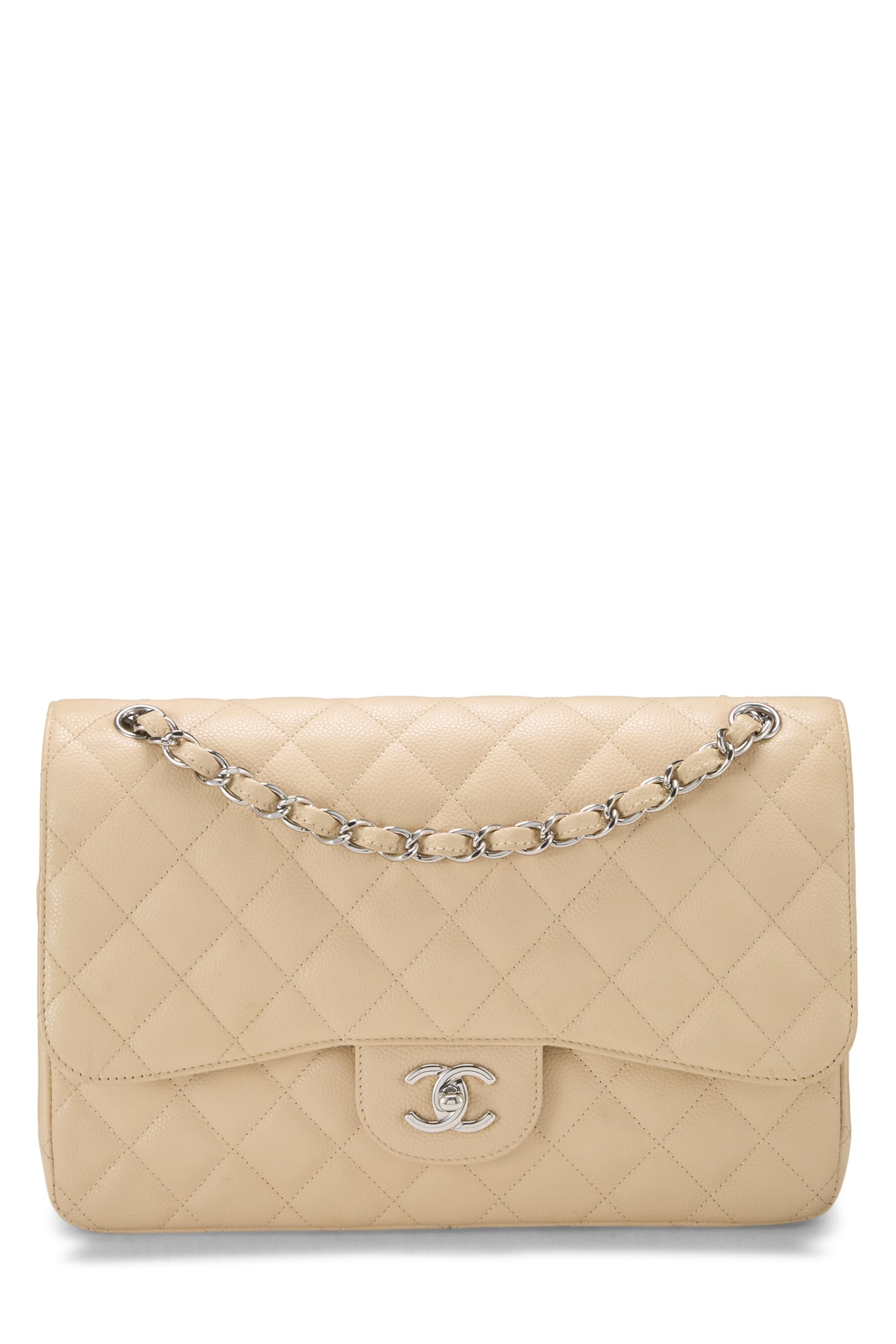 Chanel, Pre-Loved Beige Quilted Caviar New Classic Double Flap Jumbo, Beige