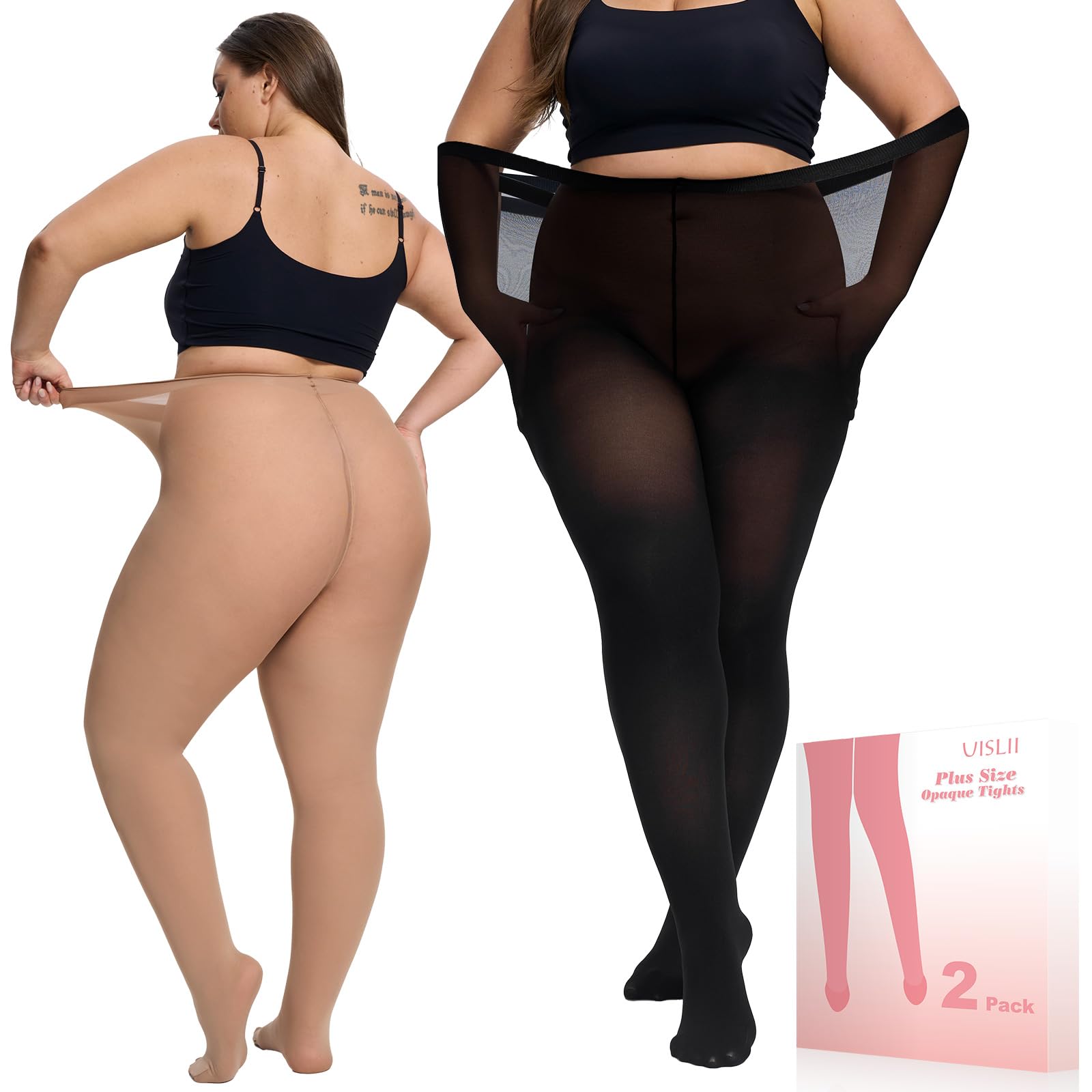 PLUS SIZE TIGHTS FOR WOMEN,RESOLVE YOUR SIZE ISSUE:Our market research team has collected a large amount of size data for plus size women and designed this exclusive 80D opaque tights for them.Provides standard sizes of 1xl-6xl,The comfortable size greatly enhances the comfort and fit of wearing.Find your own size in the size chart on the page and be your plus size girl. EXCELLENT FABRIC OPAQUE TIGHTS FOR WOMEN:UISLII tights Knitted from microfiber,the leggings are soft and stretchy,so you feel free and comfortable even when wearing them all day long.The four-way stretch yarn provides a thin,smooth fit,so there's enough stretch to be comfortable,but no slippage. HIGH WAISTED DESIGN:These 80D opaque stockings are designed with a high waist to provide extra support and smooth your silhouette.Featuring a design that creates a slight compression that keeps them upright and never rolls over,ideal as a control top pantyhose,they enhance your shape while remaining discreet under dresses in daily life It's a good choice for dressing up. MULTI-COLOR COMBINATION TIGHTS WITH NICE PACKAGING:We provide two pairs of tights for each item and have paired them with a variety of color combinations for you to choose from,whether it's an elegant black,or a vibrant green wine color,choose to your heart's content, no matter what the season is,no matter what kind of clothing you're wearing,with this addition of colorful leggings, you'll be just as vibrant as the character you've chosen to be the center of attention in your life! AFTER-SALES SERVICE:Any quality problems,such as opening the bag of pantyhose damaged,or torn within 72 hours.Please contact us to send photos of damaged or torn tights,we will actively solve the problem for you and provide the appropriate alternatives.
