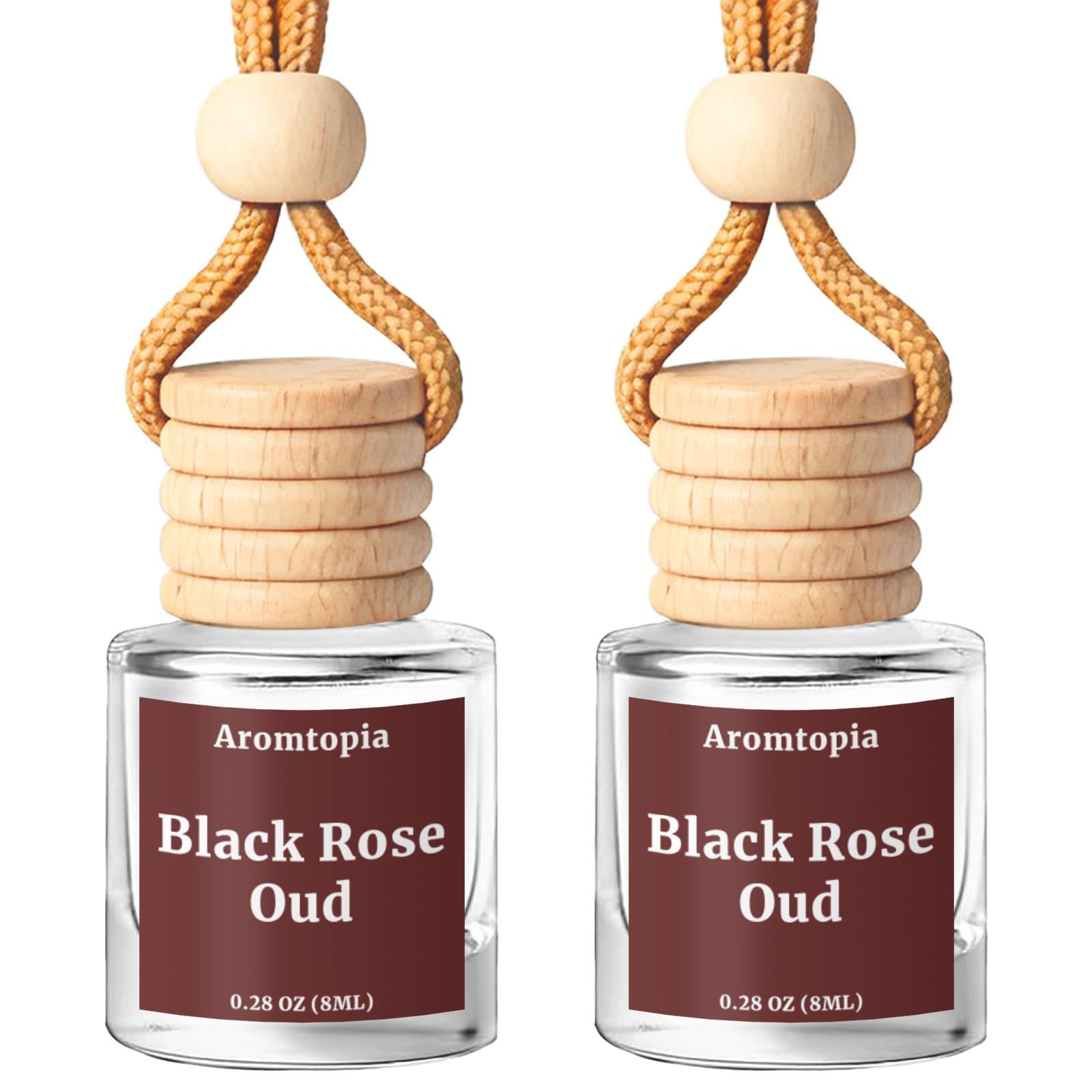 Car Air Fresheners 2 Packs, Aromtopia Essential Oil Freshener for Cars, Cute Hanging Car Fragrance Diffuser for Women & Men, Long-Lasting Car Fragrance Gift: Black Rose & Oud