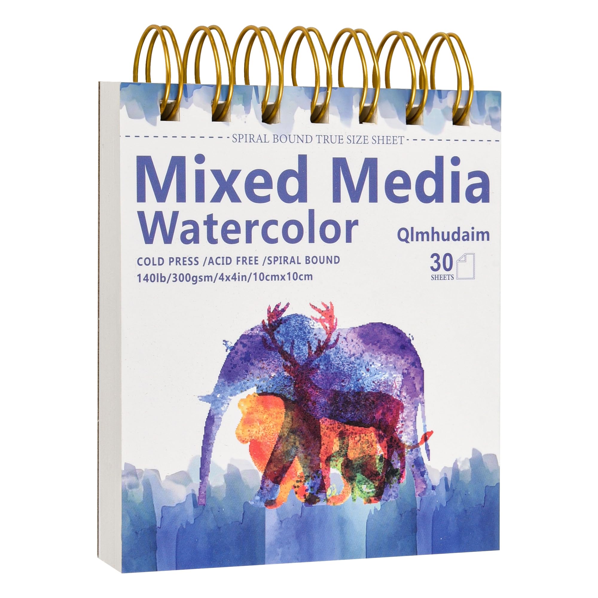 Qlmhudam Watercolor Paper Pad 8" x 11" - Heavyweight and textured paper Sketchbook,Spiral Bound, 20 Sheets 140lb/300g sketch pad, Watercolor Sketchbook for Wet & Dry Media,Drawing ,& Painting Journals Watercolor sketchbook Multi-Pack | 4x4" (30) | 4x6" (30) | 5x7.5" (30) | 8x11" (20) | Premium 300g,Paint grand landscapes on large sheets,hone your craft on perfect practice paper, or sketch parks/cafés with small sketch book ,Freedom to create,Choose your size Premium Heavyweight and textured Watercolor Paper :140lb/300g watercolor paper provides exceptional color soaking consistency and smooth blending properties. Kids /Teachers love no-fuss art time, and professional artists utilize it for museum-display pieces because of its archival quality. Engineered for watercolorists spiral-bound watercolor sketchbook lays completely flat at 180° to prevent pigment pooling during wet washes, while its 360° rotating spine allows artists to adjust paper angle for optimal color blending. This ambidextrous design accommodates all hand orientations, significantly enhancing watercolor workflow efficiency. Our water color paper is suitable for a wide range of artistic mediums, including watercolors, acrylic paints, watercolor pencils, graphite pencils, fountain pens, markers, charcoal, and pastels.etc The texture of this watercolor paper is described as having a "cold-pressed" finish, which provides enough tooth for layering while still being smooth enough for detail work