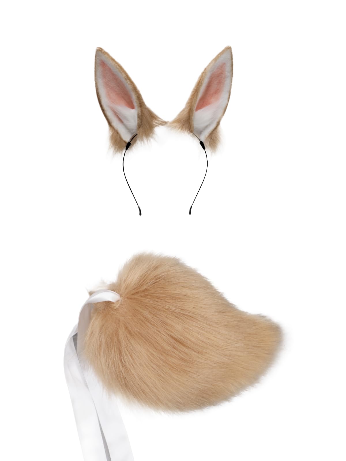 QinRuan Women's Bunny Ears Headwear Faux Fur Rabbit Ears Headbands and Tail Cosplay Party Coustume Set: Camel