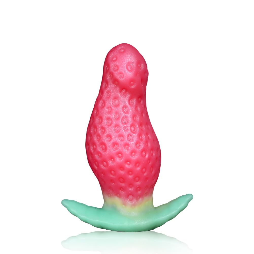 MORE FEATURES: - Strawberry shaped silicone anal sex toy is perfect for anal and vaginal use. Curved design precisely stimulates the G-spot or prostate. - The comfortably curved wearable leaf shaped base hugs your cheeks and is perfect for sitting, casually walking around and lying down. - Anal plugs have a tapered tip that tapers to the center and narrows to the neck, so your anus can accommodate them comfortably. - Can be completely immersed in water, so it’s ideal for intimate shower or tub anal stimulation and training. Use with lubricants will get more comfort and sexual pleasure. WARM TIPS: Clean thoroughly before and after use. Use with water-based lubricant to get a better experience. If you experience any discomfort during use, please discontinue use. Please allow a little error due to different measurement methods. FANTASY REALISTIC DILDO: Strawberry inspired design, covered with strawberry seeds on surface for a realistic experience and friction stimulation. Mimics a realistic glans, intricate textures and a delightfully soft texture that feels just like a real penis NARROW FLARED SAFETY BASE: Leaf-shaped base helps keep this sex toy in right place and stimulates your perineum for double the pleasure. The narrow neck keeps you away from accidentally falling off when going out CLEVER CURVED SHAPE: Fits your natural internal shape perfectly, the butt plug has a clever curve in the shaft to allow it to stimulate all your favourite sensitive zones and lead you to orgasm COMFORTABLE ANAL PLUG: Pure liquid silicone with skin-friendly and soft touch feeling. The butt plug is comfortable to wear during couple sexual life or personal masturbation and will bring you unequaled feeling SUPER FLEXIBLE AND ELASTIC BUTT PLUG: Whether you bend it or stretch it, it will recover quickly when you let go. You can easily bend it to your favorite angle and reach the most intense sensation quickly