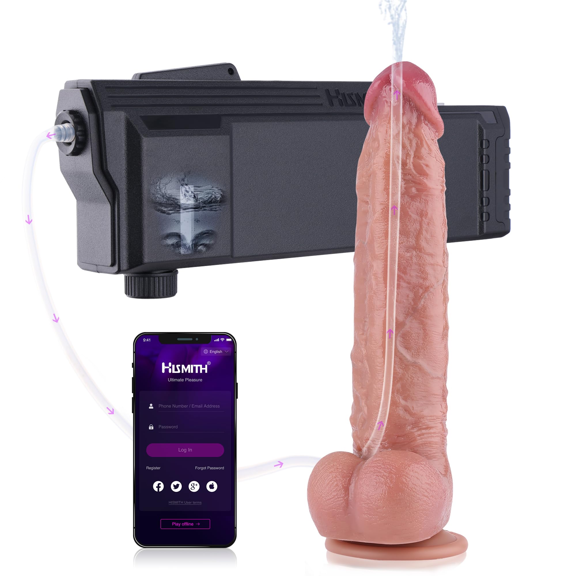 Enjoy smoother, uninterrupted play by using the app to activate continuous spraying. Paired with the water-spraying toy, it lets you lubricate directly without pausing the fun Revolutionary Auto-Lube System for Uninterrupted Pleasure: Take your experience to the next level with this automatic lubricant launcher designed for smooth, consistent lubrication without stopping play. Ideal for intense sessions, this revolutionary innovative sex toy is ideal for those seeking maximum realism, less interruption, and more pleasure An Essential Upgrade for Your Hismith Sex Machine: Easily mounts to Hismith Premium 3.0, 3.5, 4.0, and ServoK love machine models's leg frame using the included detachable bracket. Fully joins with the Hismith App for app-based control and play Standalone Play Without a Sex Machine: No sex machine? No problem. This lube launcher can be used independently with the included cumtube-equipped or ejaculating dildo or other Hismith squirting dildos. This automatic lubricant launcher works great on its own, you just enjoy a powerful solo experience Strong Pump Performance & Easy Refills: Equipped with a powerful internal pump and a 70ml reservoir, this lube applicator ensures effective delivery with every use, also includes a syringe for easy refill. While not silent, it prioritizes power over quiet operation, ensuring strong bursts every time Realistic Squirting Silicone Dildo Attachment Included: Bundled with a Hismith 10.2" Realistic Squirting Dildo, made of soft silicone, while the texture retains lube for enhanced realism. The realistic dildo fitted with durable, leak-resistant tubing, and the connector locks securely to the launcher. Multiple silicone dildo designs available on Hismith store for your selection Easy to clean: When you’re finished, just fill the reservoir up again with water, shake it around a little, and keep shooting until you empty it. Repeat the process if you’re still finding the ejaculate is a little white or slippery Universal Compatibility with Multiple Machines' Leg Frame: The included clamp is designed to fit securely on most sex machines with 25mm support rods, making it usable with many non-Hismith brands Compatible with Most Squirting Dildos: Equipped with multi-ring connectors, the automatic lubricant launcher is compatible with most squirting dildos that use flexible tubing with a 2–2.5mm inner diameter. This ensures a tight seal and reliable performance with various silicone dildo styles Easy to Use with Dual Control Modes: Hold down the only button for a second or two to activate the power, then press again to spray! Connect via the Hismith App, and even share control with a partner anywhere in the world. A perfect feature for remote-controlled sex toys How much comes out with each press and far it travels depends on how thick your lubricant is. Very thick lube will only dribble out, and if you want a longer range, please water down your lube a little, which is easy if it’s water-based