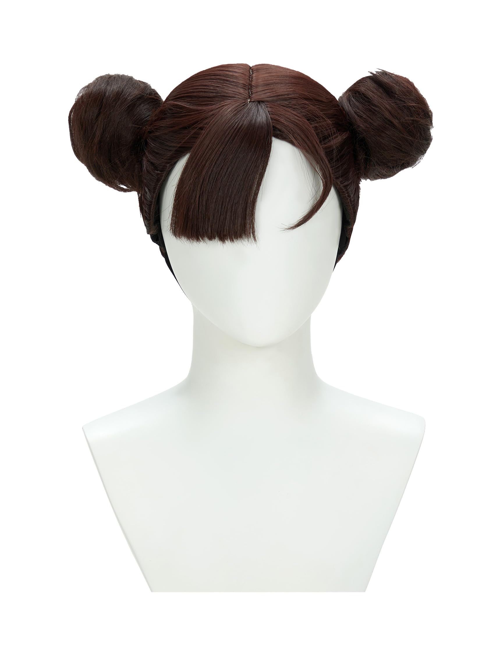 Micotaku Street Fighter Classic Chun-Li Cosplay Wig with Double Hair Buns: Dark Brown